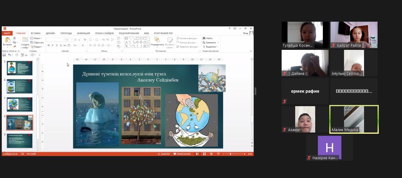 Біз болашаққа жауаптымыз атты экологиялық жалпыреспубликалық апталық аясында өткізілген сынып сағаттары