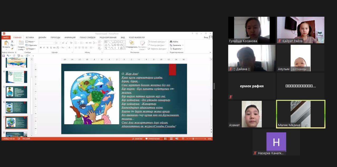 67 жалпы білім беретін мектепте 6 а сыныбында " Жер туралы не білеміз" тақырыбында сынып сағатты өтті. Сынып жетекшісі Джумадилова Гулназ. Сонымен қатар Қанатқызы Назеркенің жетекшілігімен 5 а сыныпта "Біз болашаққа жауаптымыз" тақырыбында сынып сағаты өткізілді.