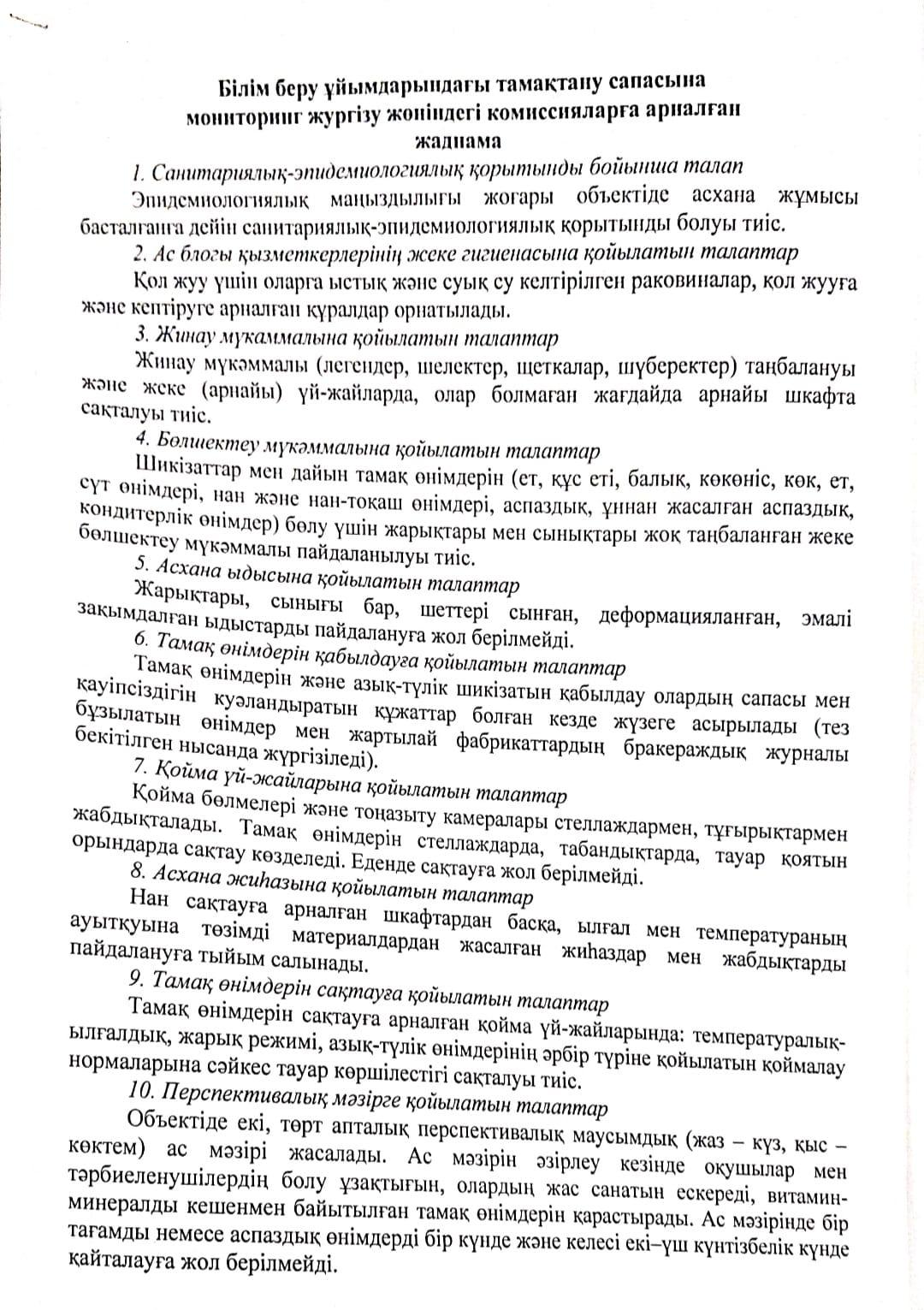 01 қыркүйек 2022 0 1 2 3 4 5 Тамақтану сапасына мониторинг жүргізу жөніндегі комиссияларға арналған жаднама Осы беттің QR-коды:QR-код этой страницы: