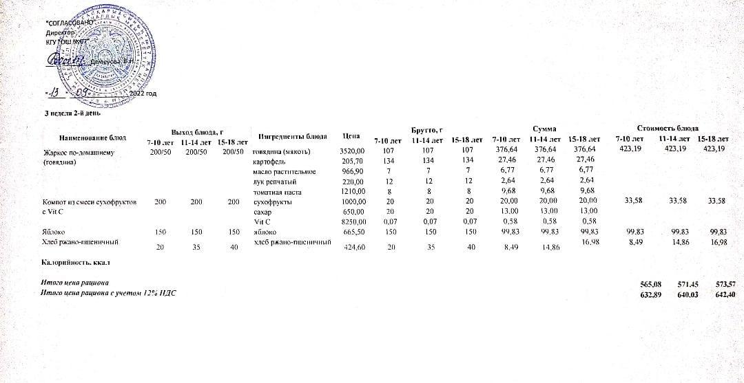 Ас мәзірі. 13.12.2022 ж. 2-апта, 2-күн