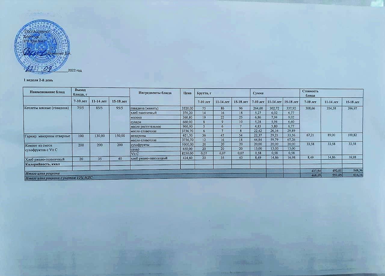 Ас мәзірі. 15.12.2022ж. 2-апта, 4-күн