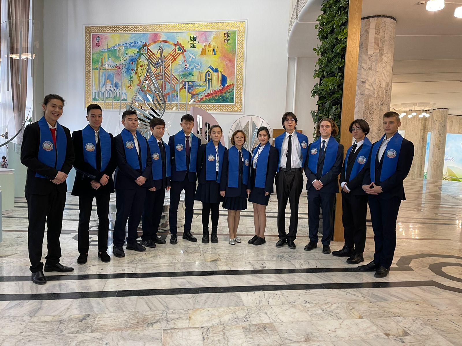 " Мен-КӨШБАСШЫМЫН" атты білім беру ұйымдарының мектеп және студенттер парламенттері көшбасшыларының қалалық слетінің аясында ұйымдастырылған білім алушылардың әлеуметтік жобаларының көрмесіне қатысып, 9а сынып оқушысы, мектеп президенті Құлшынбек Замира белсенді қатысушы сертификатымен марапатталды.