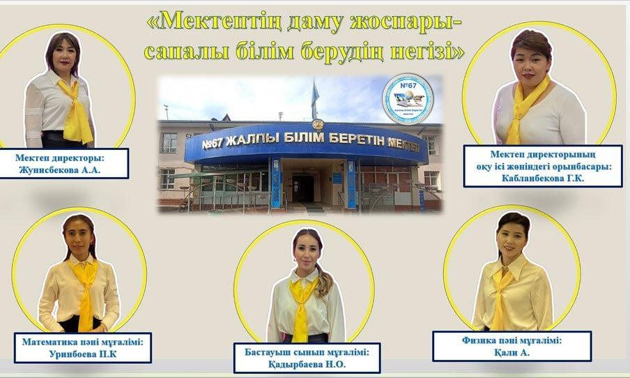 “Табысты мектеп: мектеп ұжымы арқылы білім сапасын басқару” курсы аясында «Мектептің даму жостары- сапалы білім берудің негізі» тақырыбы бойынша #67 жалпы білім беретін мектеп командасы жобаны сәтті, жоғарғы деңгейде қорғап шықты.
