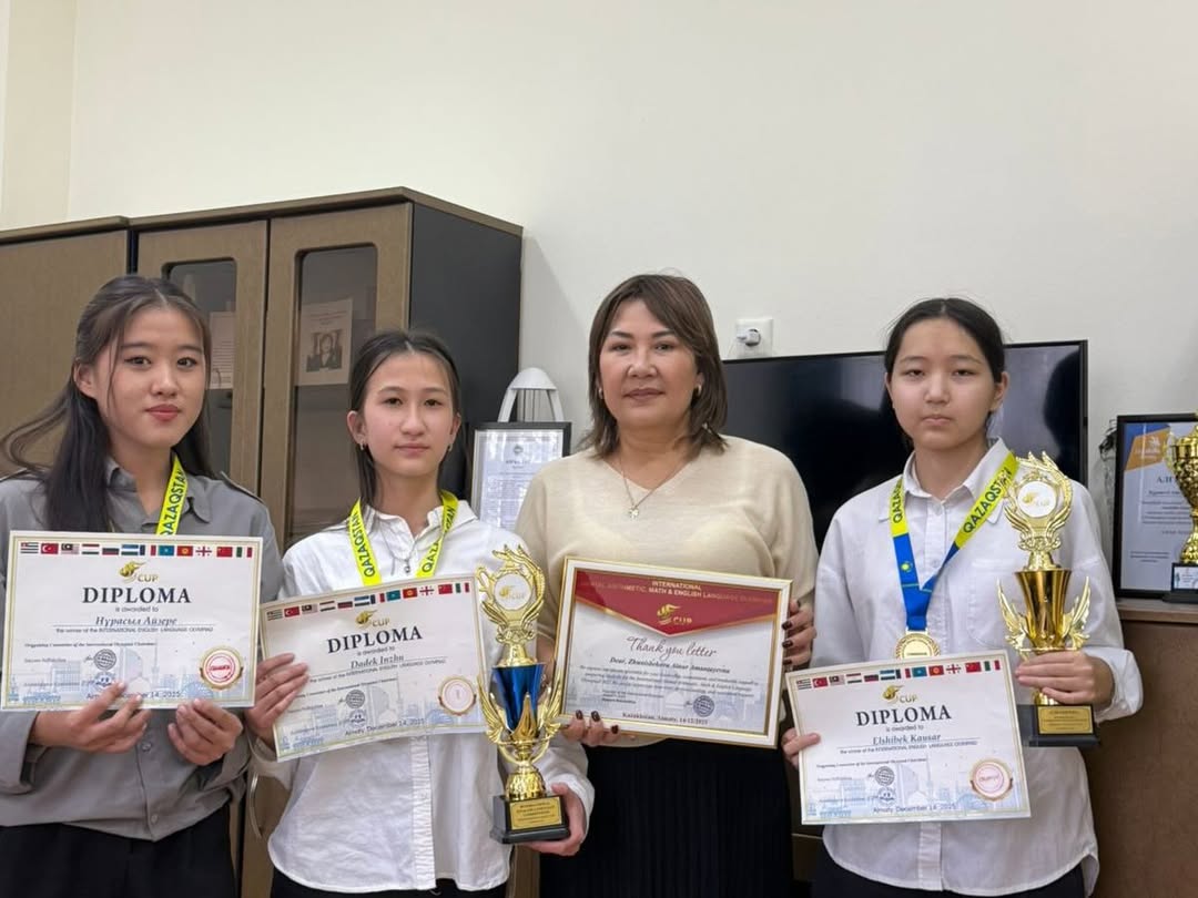 Біздің оқушыларымыз International Mental Arithmetic, Math & English Language Olympiad 2025 халықаралық олимпиадасында жоғары нәтижелер көрсетіп, жүлделі орындарға ие болды.