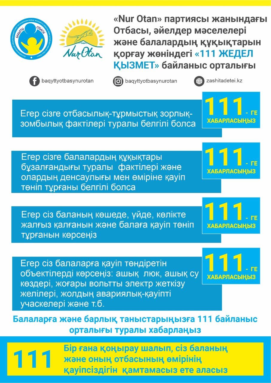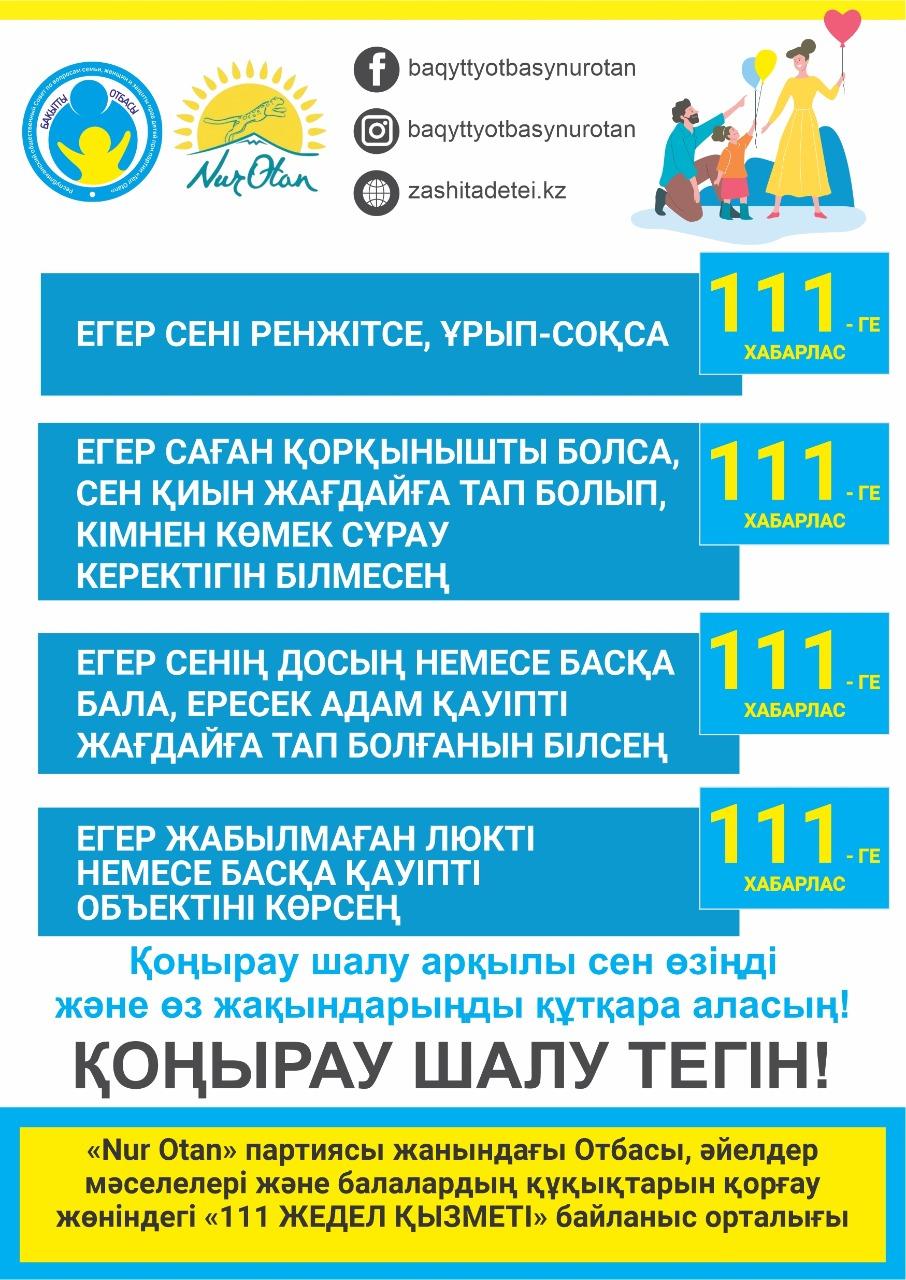14 қазан 2020 0 1 2 3 4 5 "NUR OTAN" ПАРТИЯСЫ ЖАНЫНДАҒЫ ОТБАСЫ, ӘЙЕЛДЕР МӘСЕЛЕЛЕРІ ЖӘНЕ БАЛАЛАРДЫҢ ҚҰҚЫҚТАРЫН ҚОРҒАУ ЖӨНІНДЕГІ "111 ЖЕДЕЛ ҚЫЗМЕТ" БАЙЛАНЫС ОРТАЛЫҒЫ Осы беттің QR-коды:QR-код этой страницы: