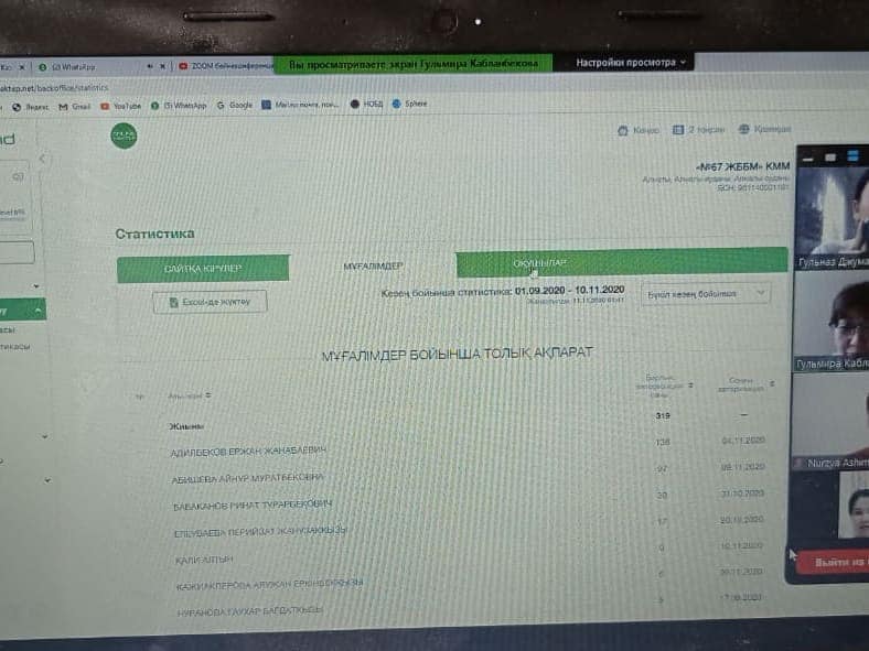 №67 жалпы білім беретін мектепте 2020 жылы 11 қарашада ZOOM платформасында «Қашықтан оқыту- заман талабы» тақырыбында вебинар өткізілді.
