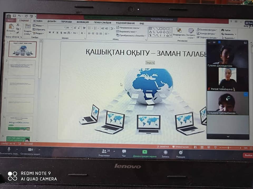 Тәжірибелі ұстаз Джумадилова Г.О. өз тәжірибесіндегі ерекшеліктермен бөлісті. Қашықтан оқыту кезінде қолданылатын әдістемелер туралы және тиімді жолдарын көрсетіп, тың идеялар мен озық тәжірибелерге, жаңашыл бастамаларға қолдау көрсетті. Ұжымды топқа бөліп, тапсырмалар бере отырып, тест орындатып, қатысушылардың қызығушылығын арттырды.