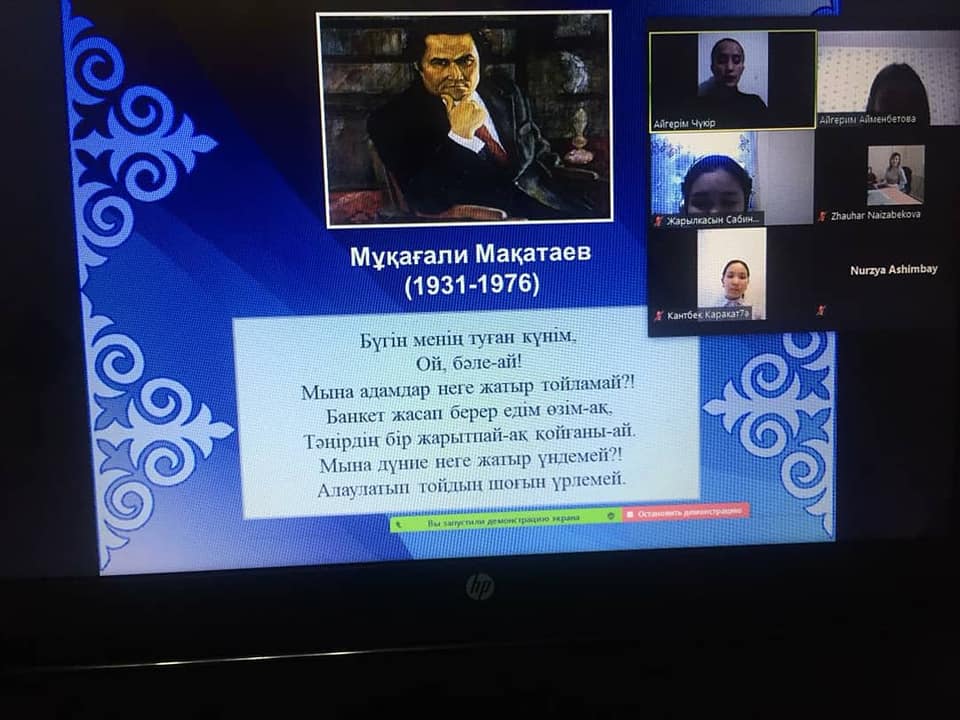 9- ақпан ақынның туған күніне орай мектебімізде ақиық ақынның 90 жылдығына арналған онкүндік іс-шаралар жоспары құрылып, «Бір өлеңі- бір елдің мұрасындай...» атты қашықтықтан онкүндігіміздің ашылу салтанаты басталып кетті