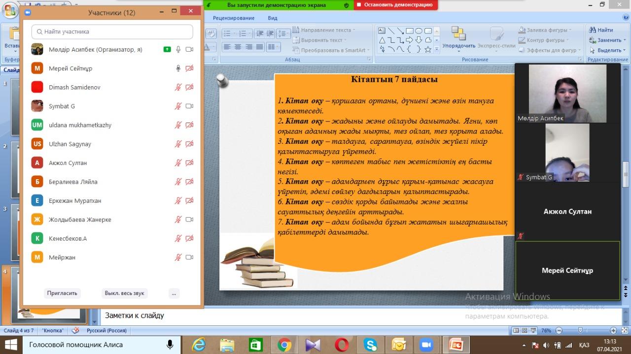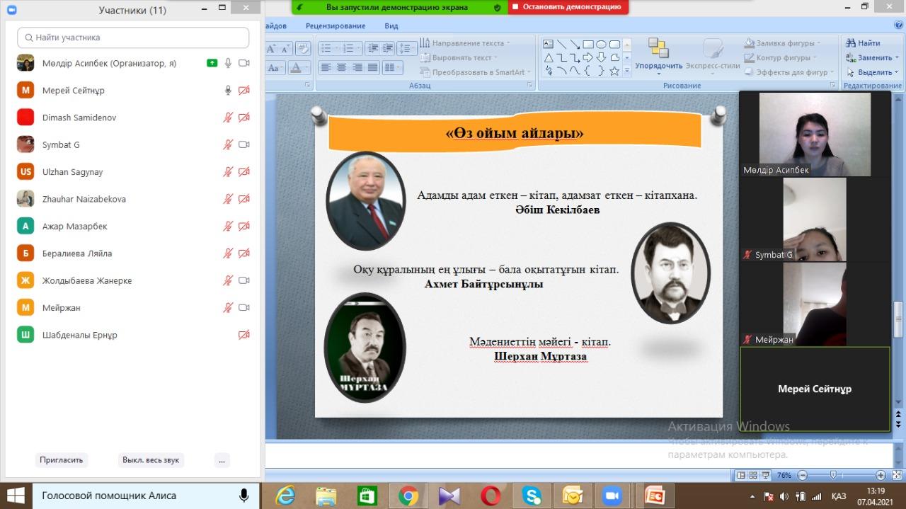 Алматы қаласы Алмалы ауданы #67 жалпы білім беретін мектепте "Оқуға құштар мектеп" жобасы аясында мектебіміздің 8 "ә", 9"ә" сынып оқушыларының арасында "Кітап - білімнің қайнар көзі" атты іс-шара өтті. Іс-шара барысында оқушылар кітап туралы көптеген қызықты ақпараттармен танысып, өздерінің ойларымен бөлісті.