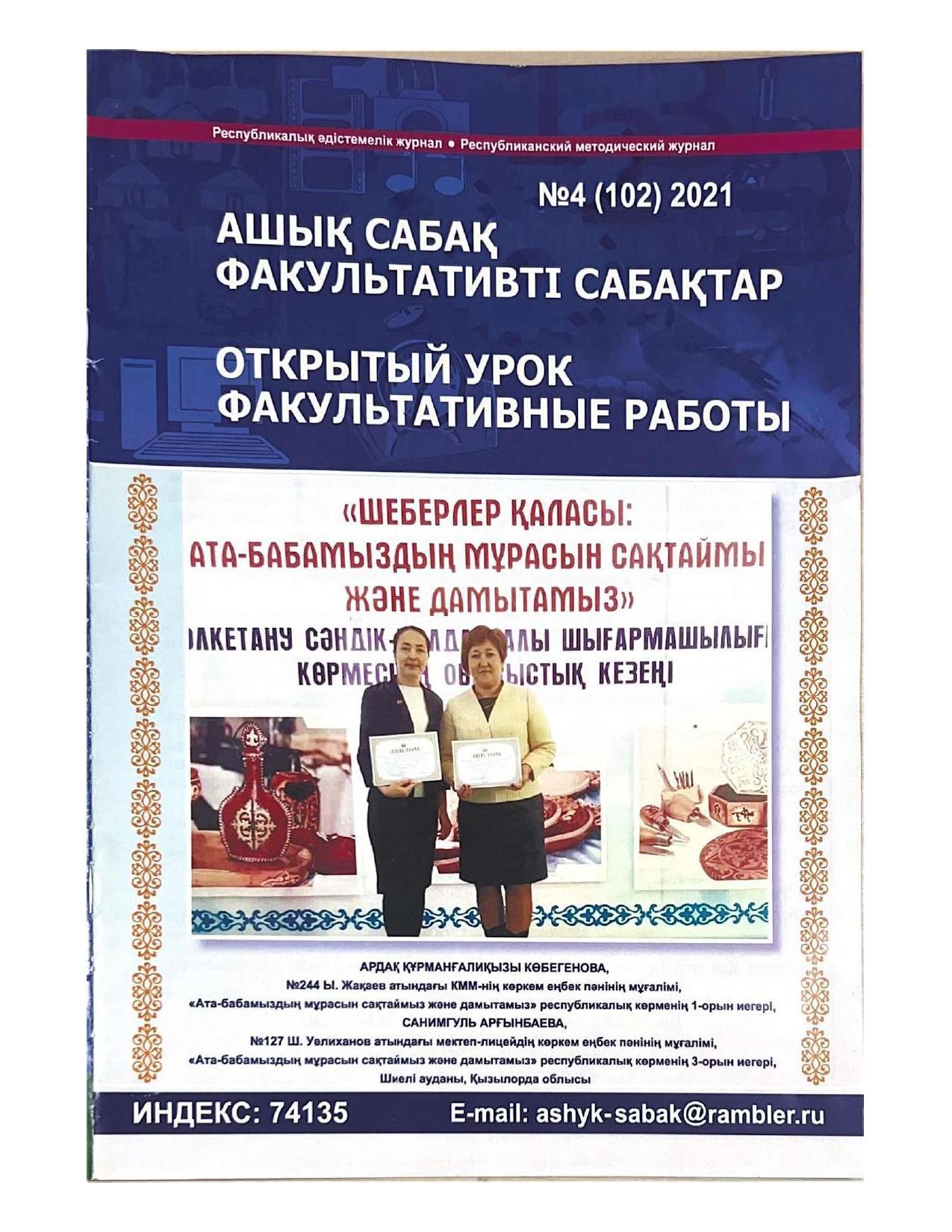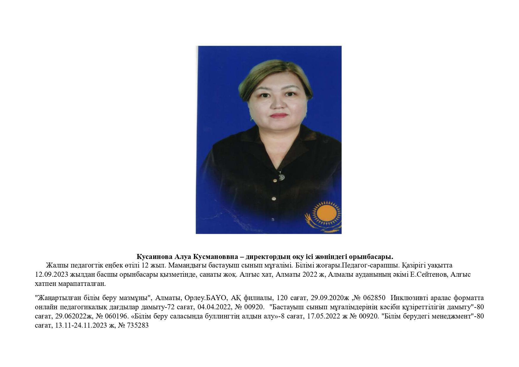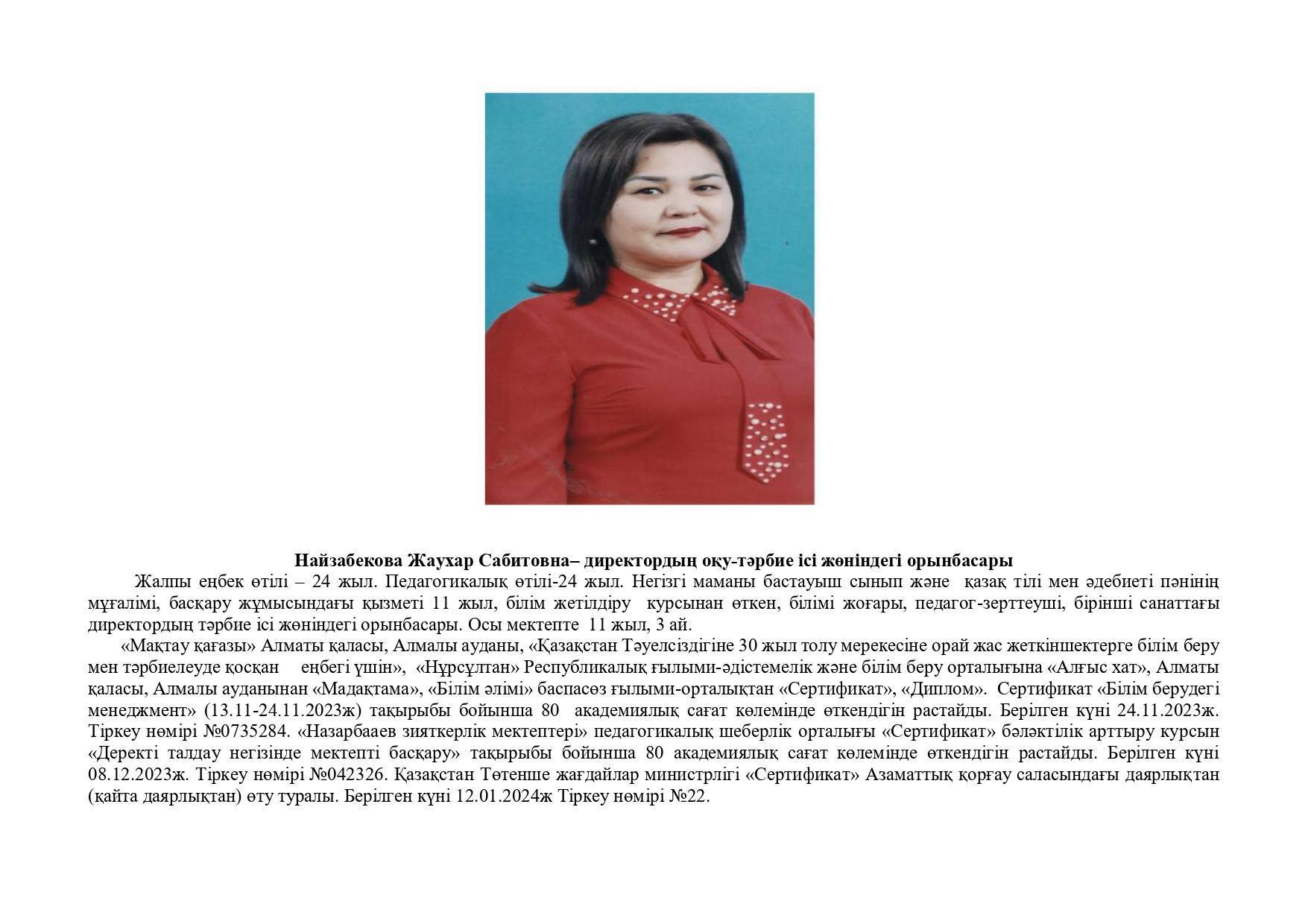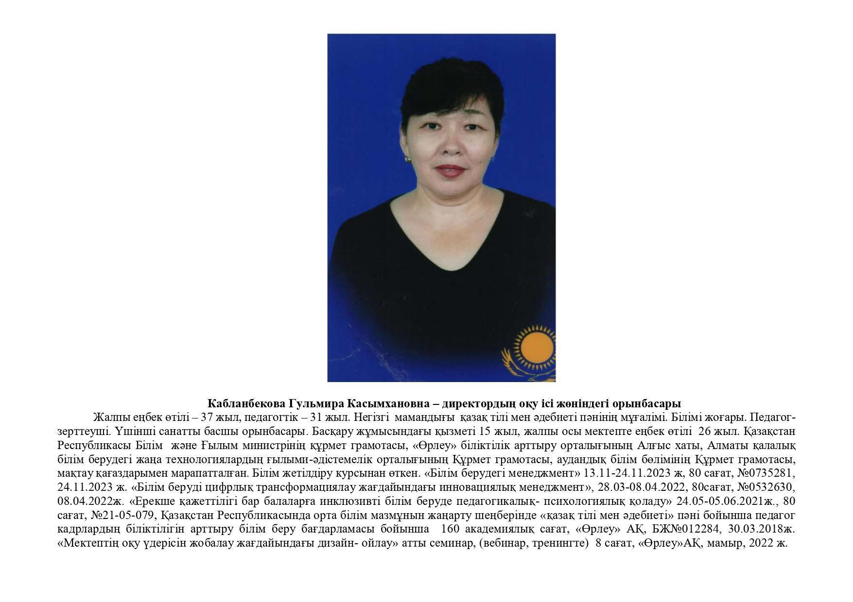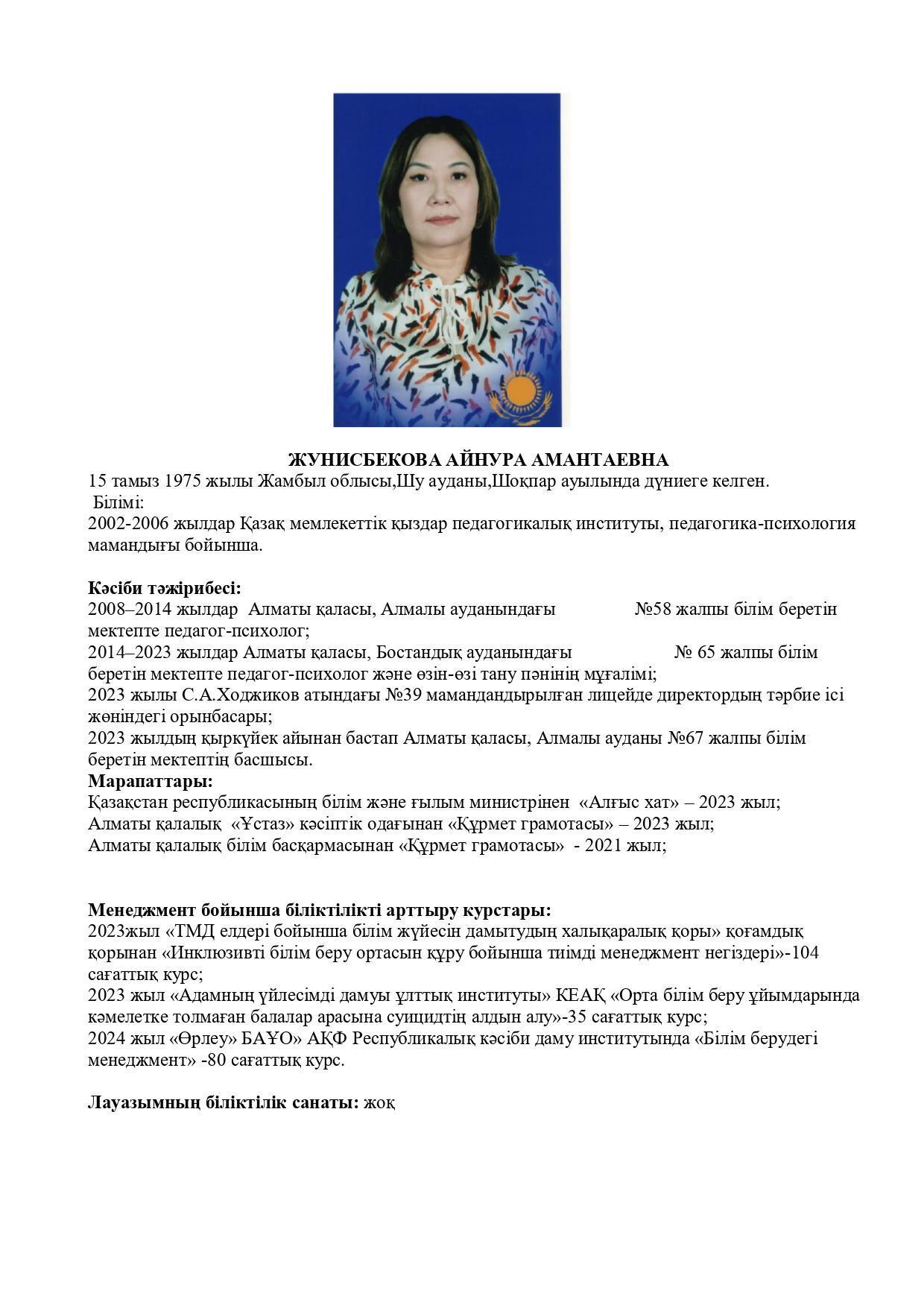 18 қыркүйек 2023 0 1 2 3 4 5 Әкімшілік Жунисбекова Айнура Амантаевна Кабланбекова Гульмира Касымхановна Кусаинова Алуа Кусмановна Найзабекова Жаухар Сабитовна Осы беттің QR-коды:QR-код этой страницы: