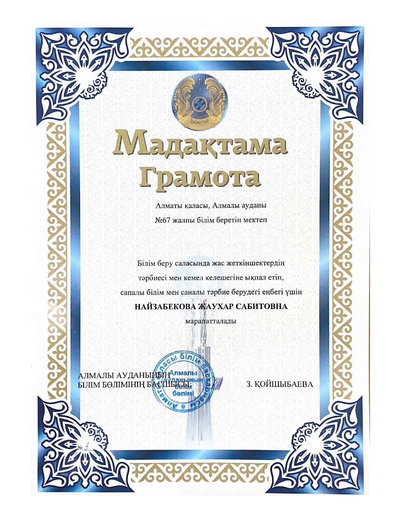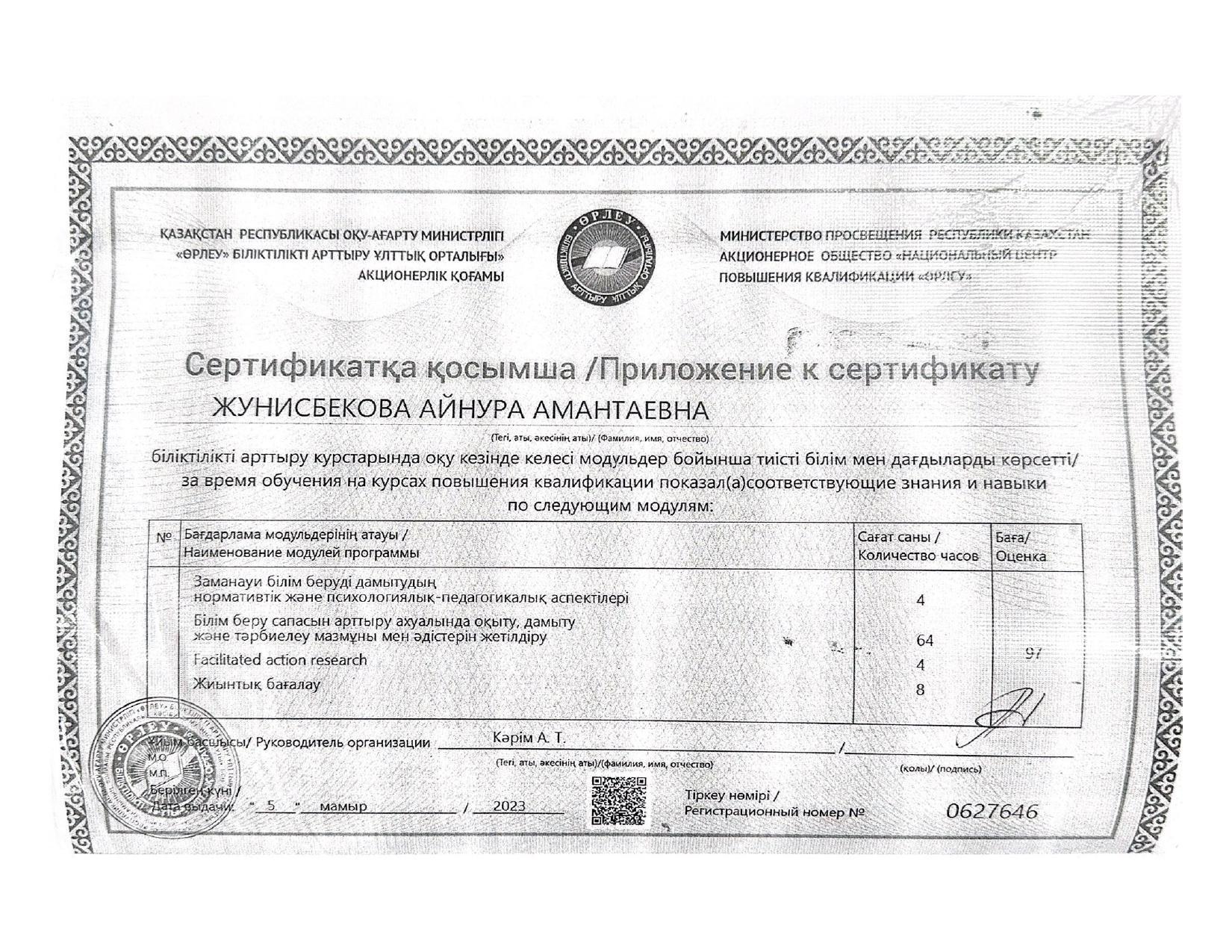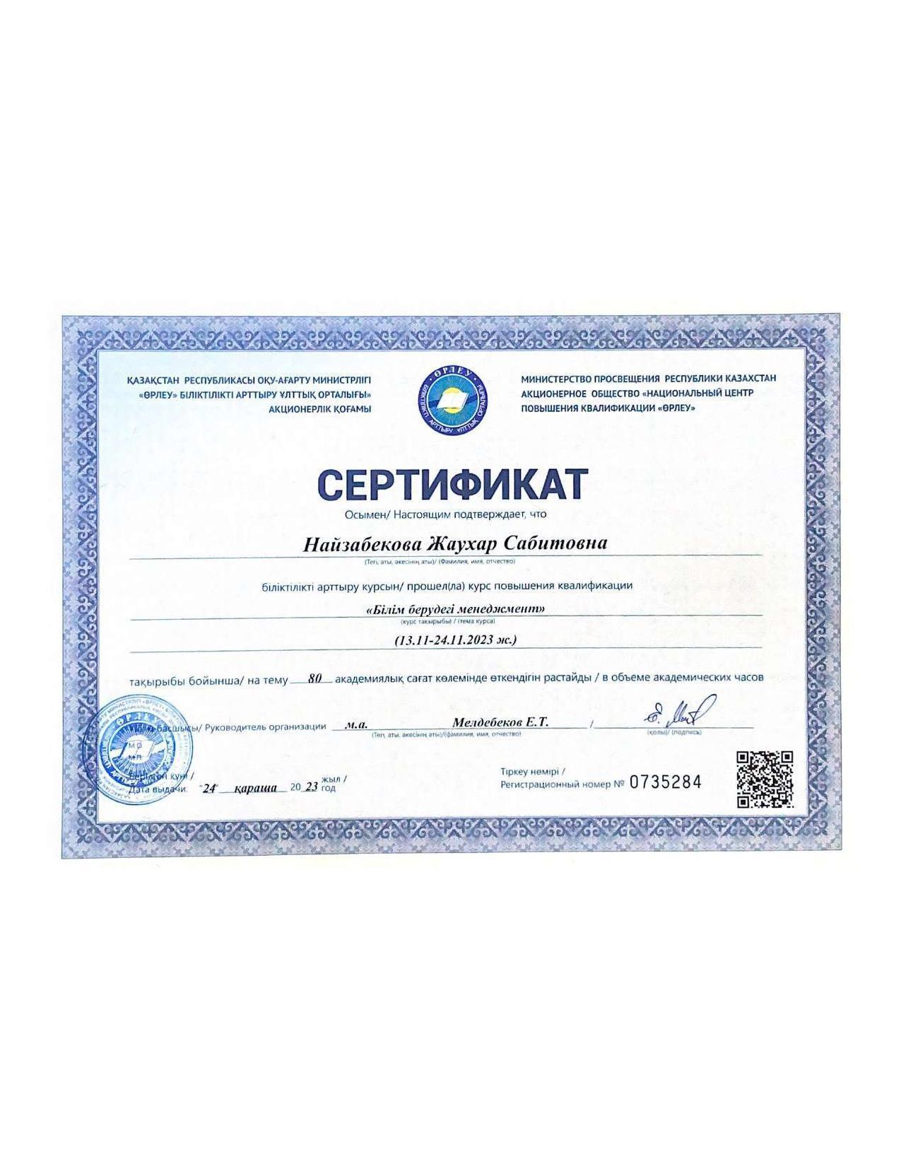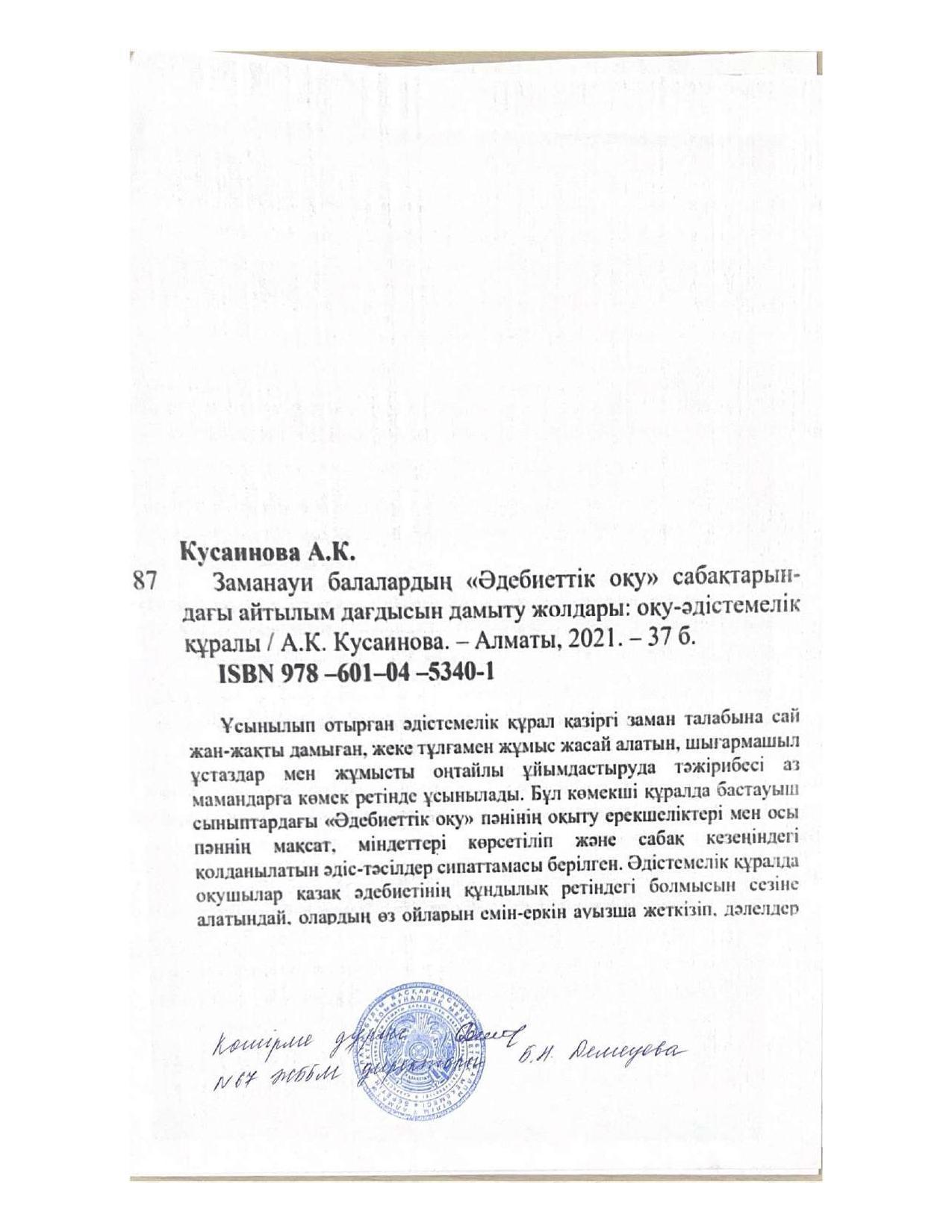18 қыркүйек 2023 0 1 2 3 4 5 Әкімшілік Жунисбекова Айнура Амантаевна Кабланбекова Гульмира Касымхановна Кусаинова Алуа Кусмановна Найзабекова Жаухар Сабитовна Осы беттің QR-коды:QR-код этой страницы: