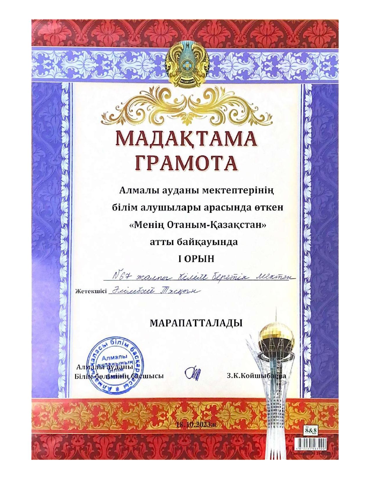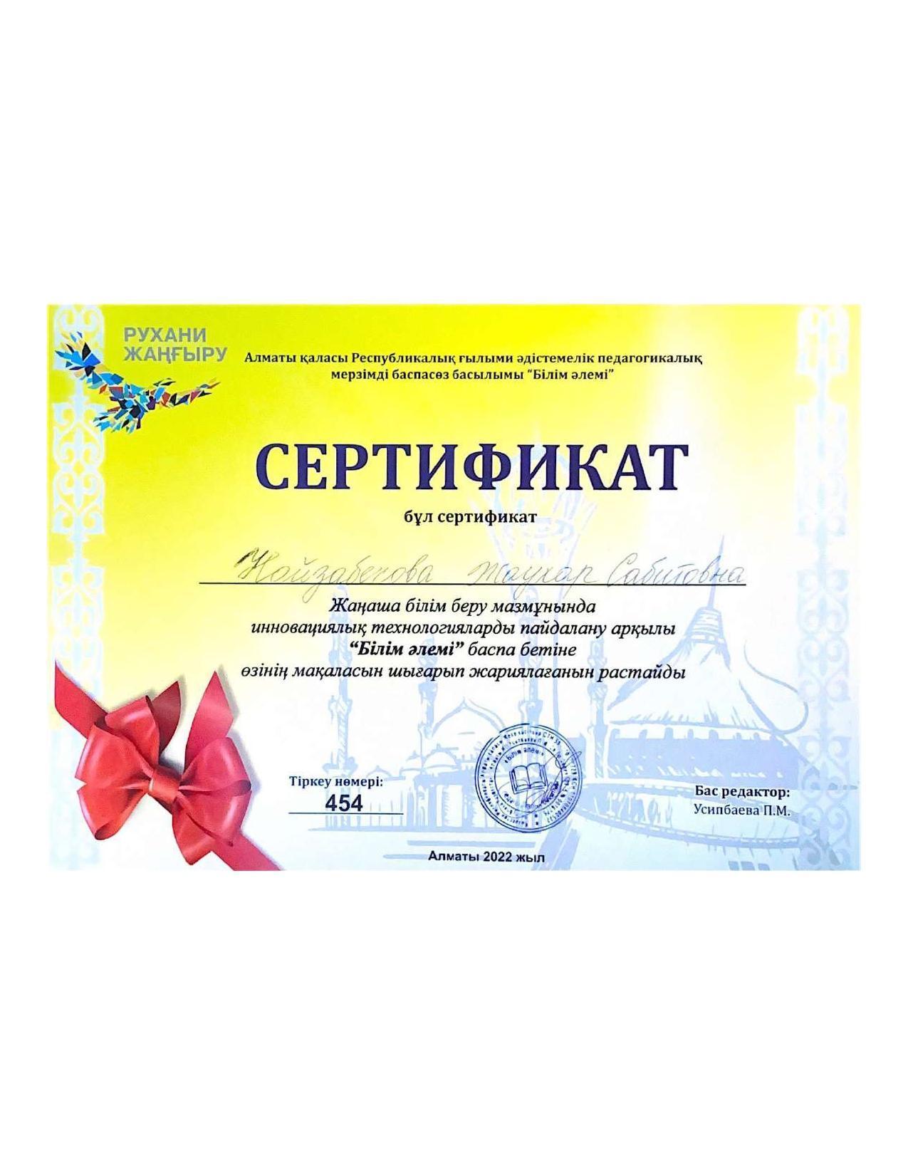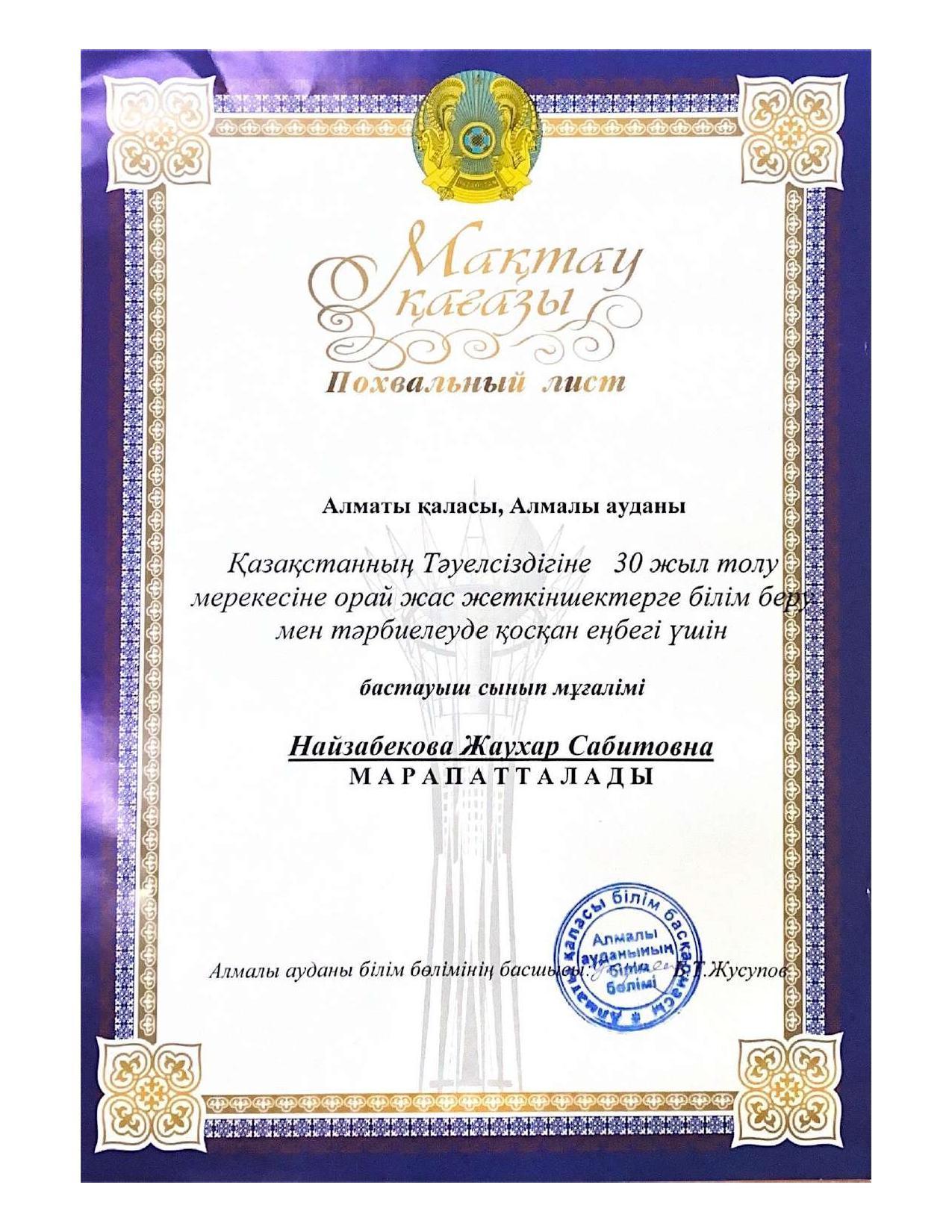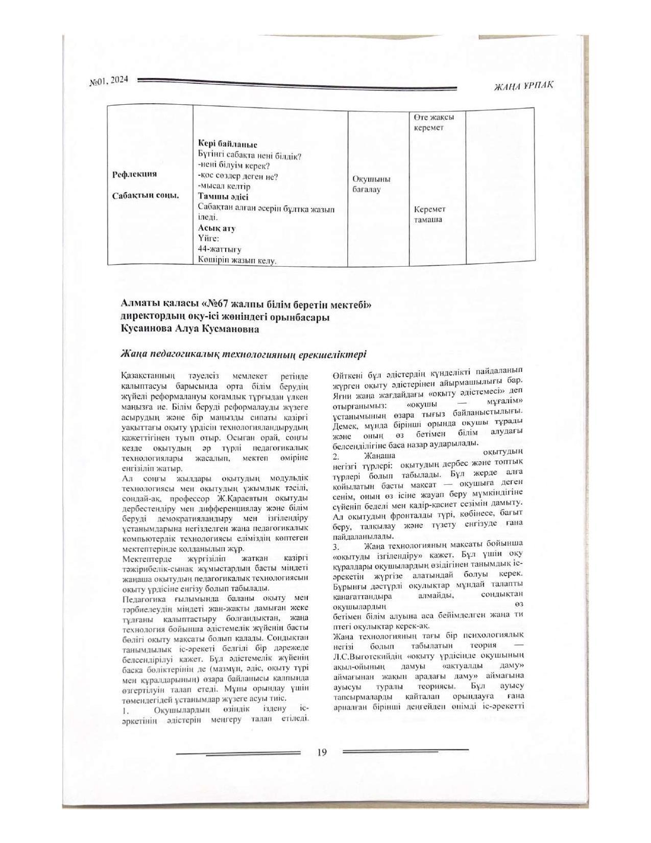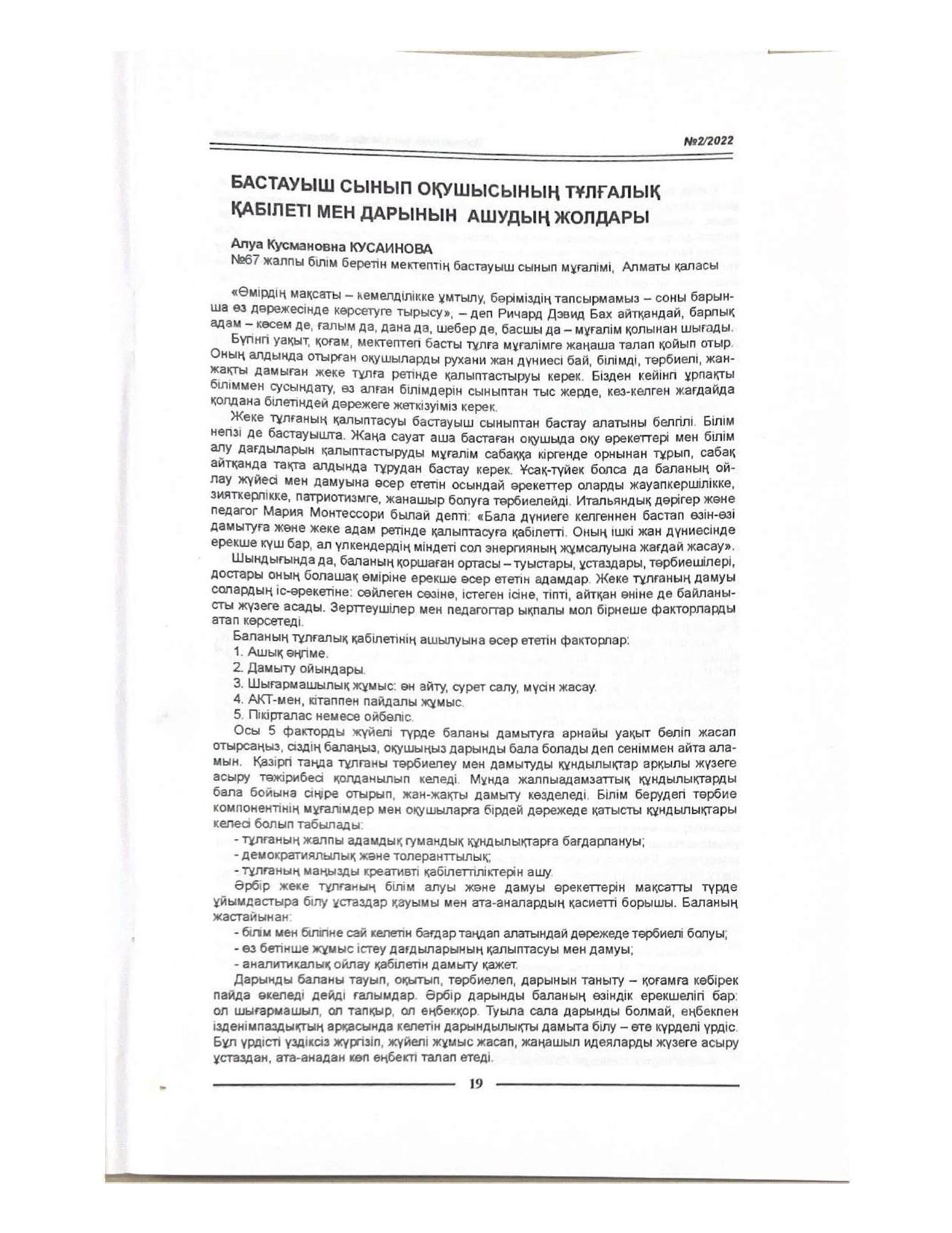 18 қыркүйек 2023 0 1 2 3 4 5 Әкімшілік Жунисбекова Айнура Амантаевна Кабланбекова Гульмира Касымхановна Кусаинова Алуа Кусмановна Найзабекова Жаухар Сабитовна Осы беттің QR-коды:QR-код этой страницы:
