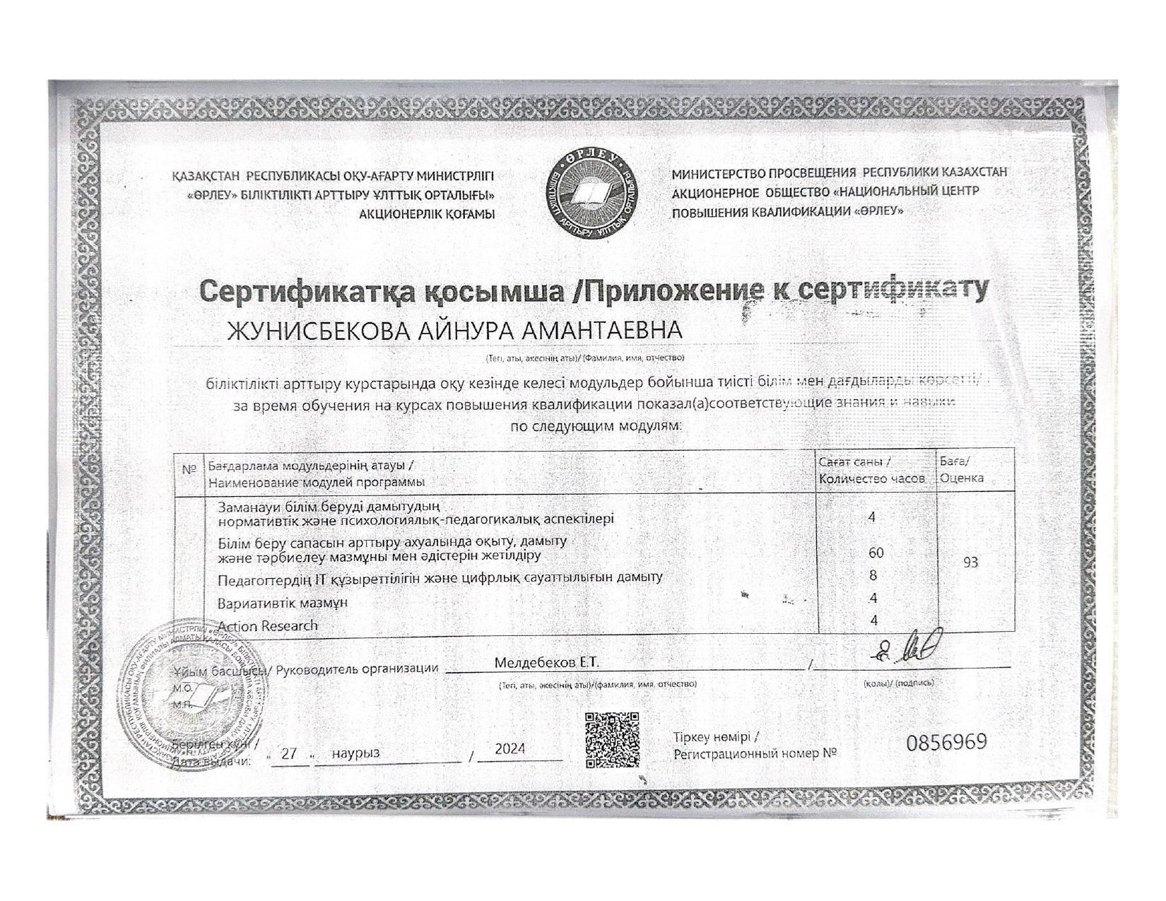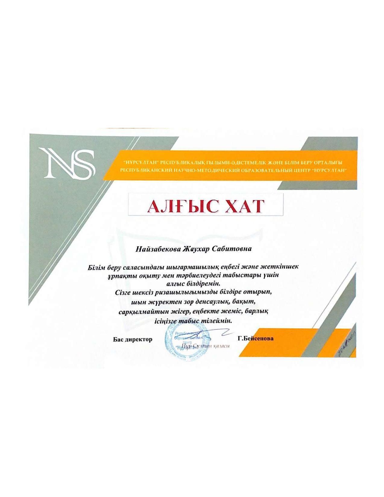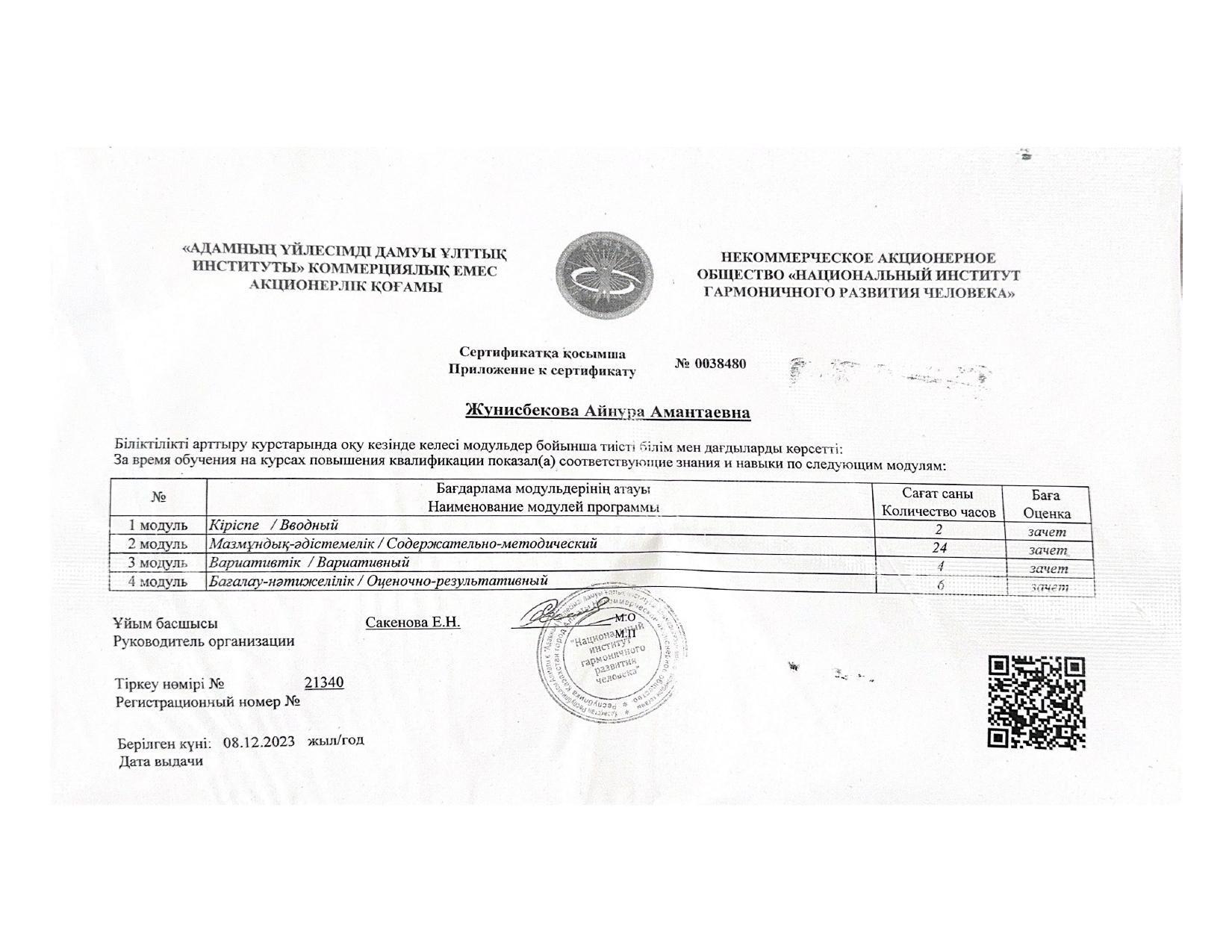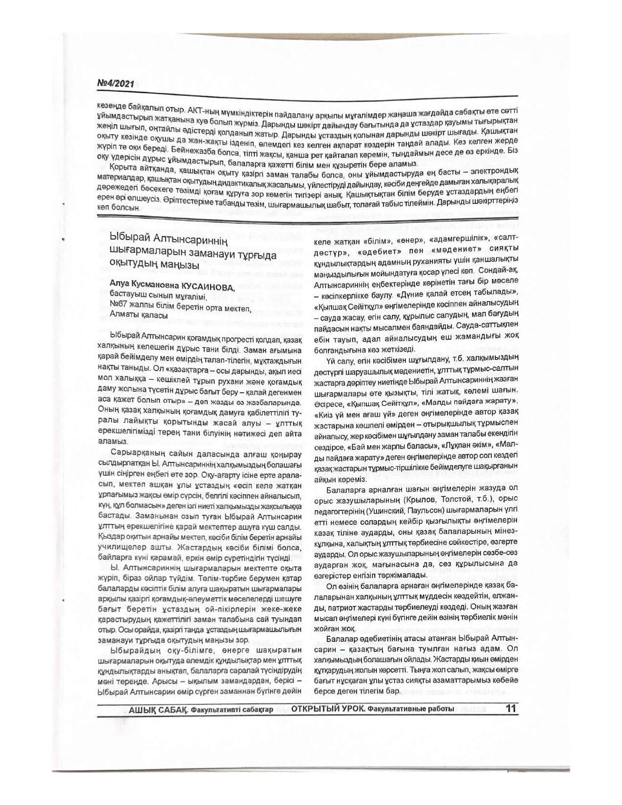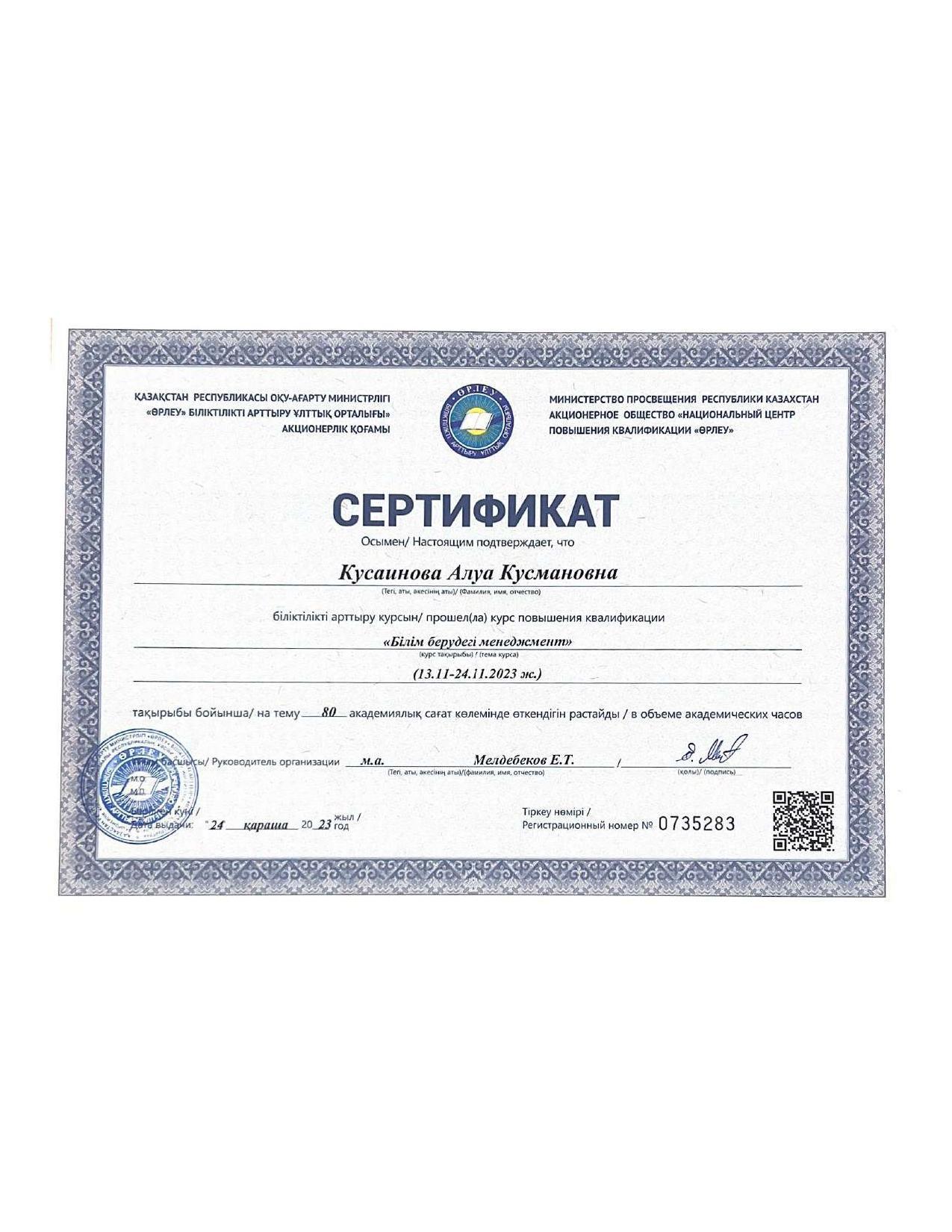 18 қыркүйек 2023 0 1 2 3 4 5 Әкімшілік Жунисбекова Айнура Амантаевна Кабланбекова Гульмира Касымхановна Кусаинова Алуа Кусмановна Найзабекова Жаухар Сабитовна Осы беттің QR-коды:QR-код этой страницы: