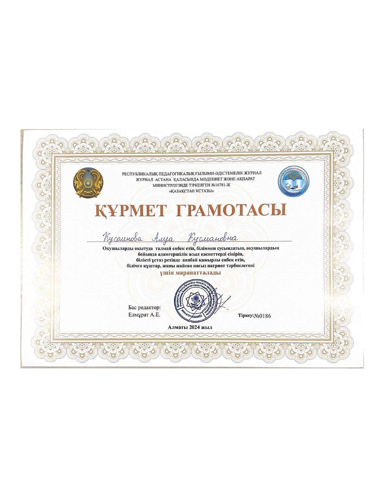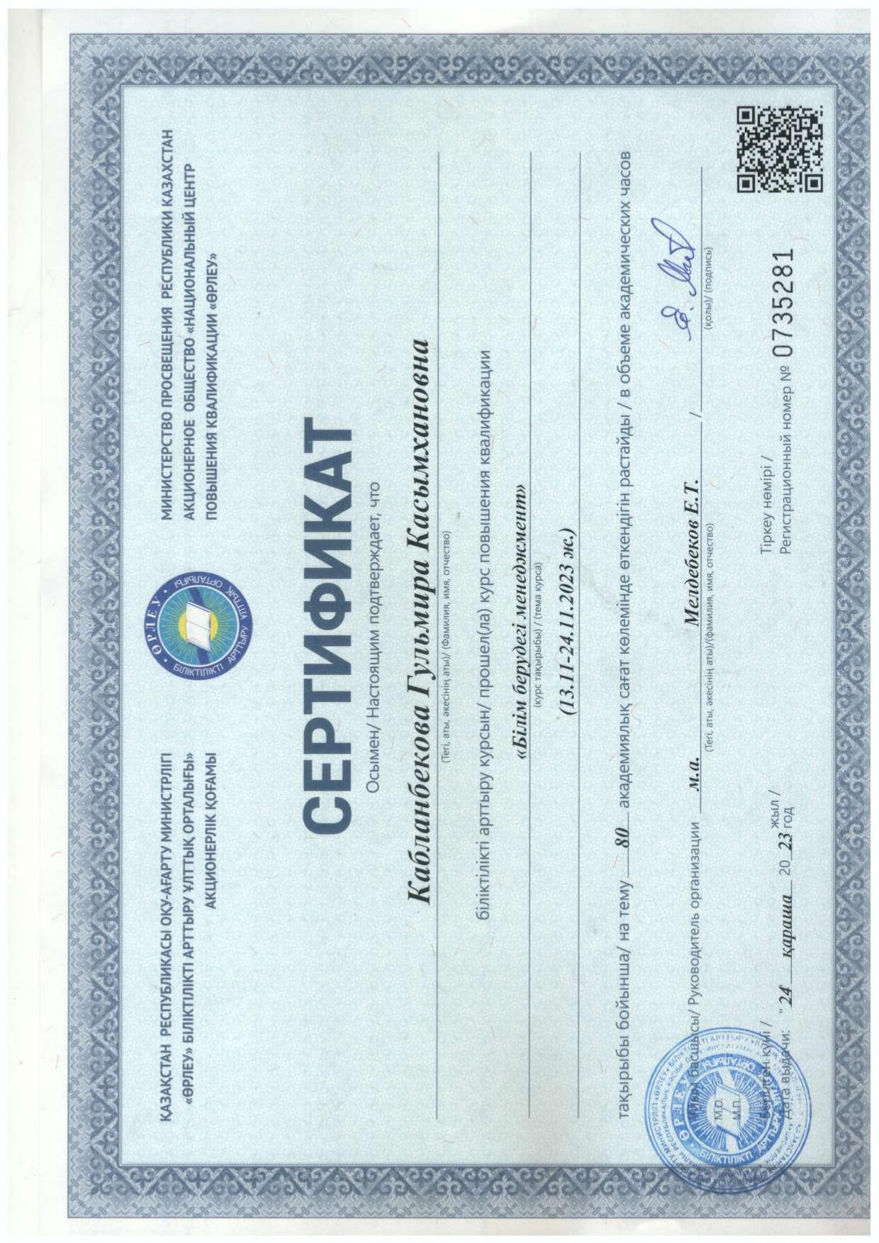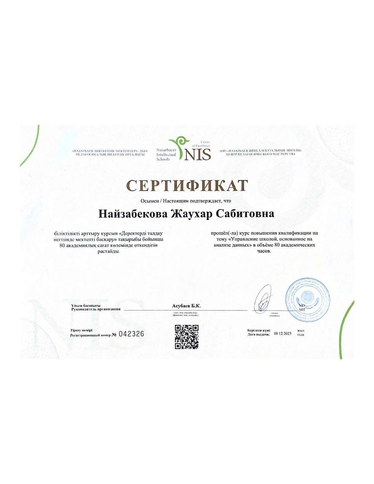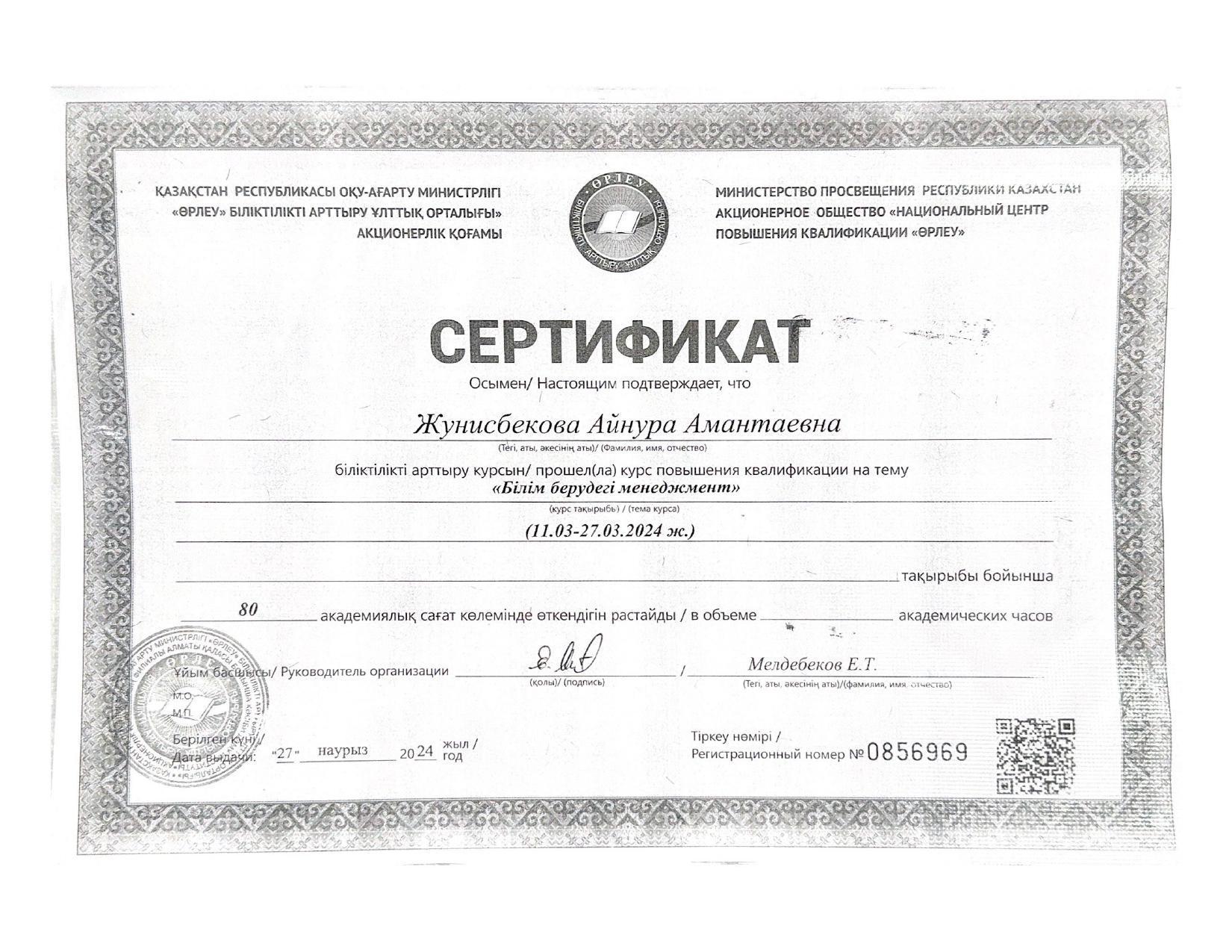 18 қыркүйек 2023 0 1 2 3 4 5 Әкімшілік Жунисбекова Айнура Амантаевна Кабланбекова Гульмира Касымхановна Кусаинова Алуа Кусмановна Найзабекова Жаухар Сабитовна Осы беттің QR-коды:QR-код этой страницы: