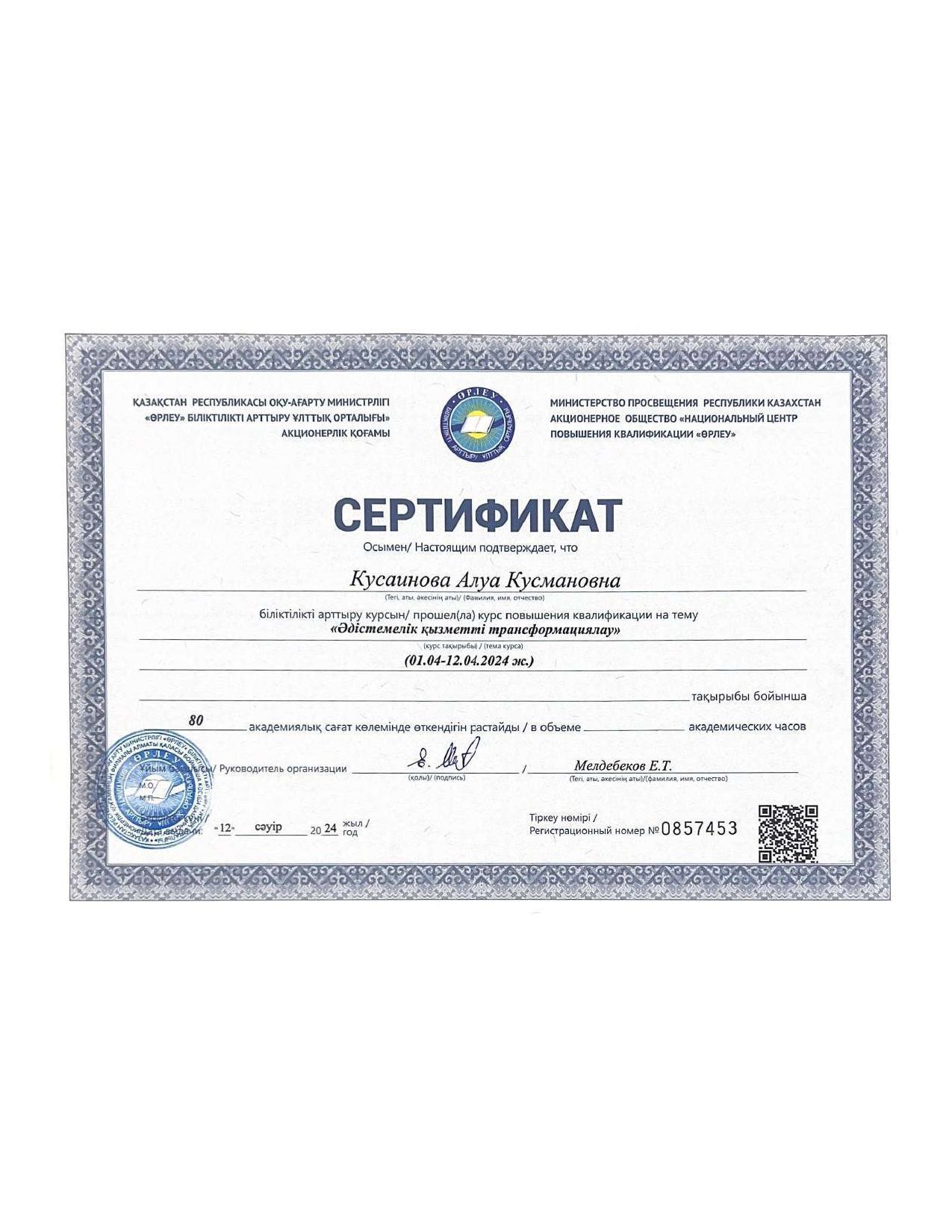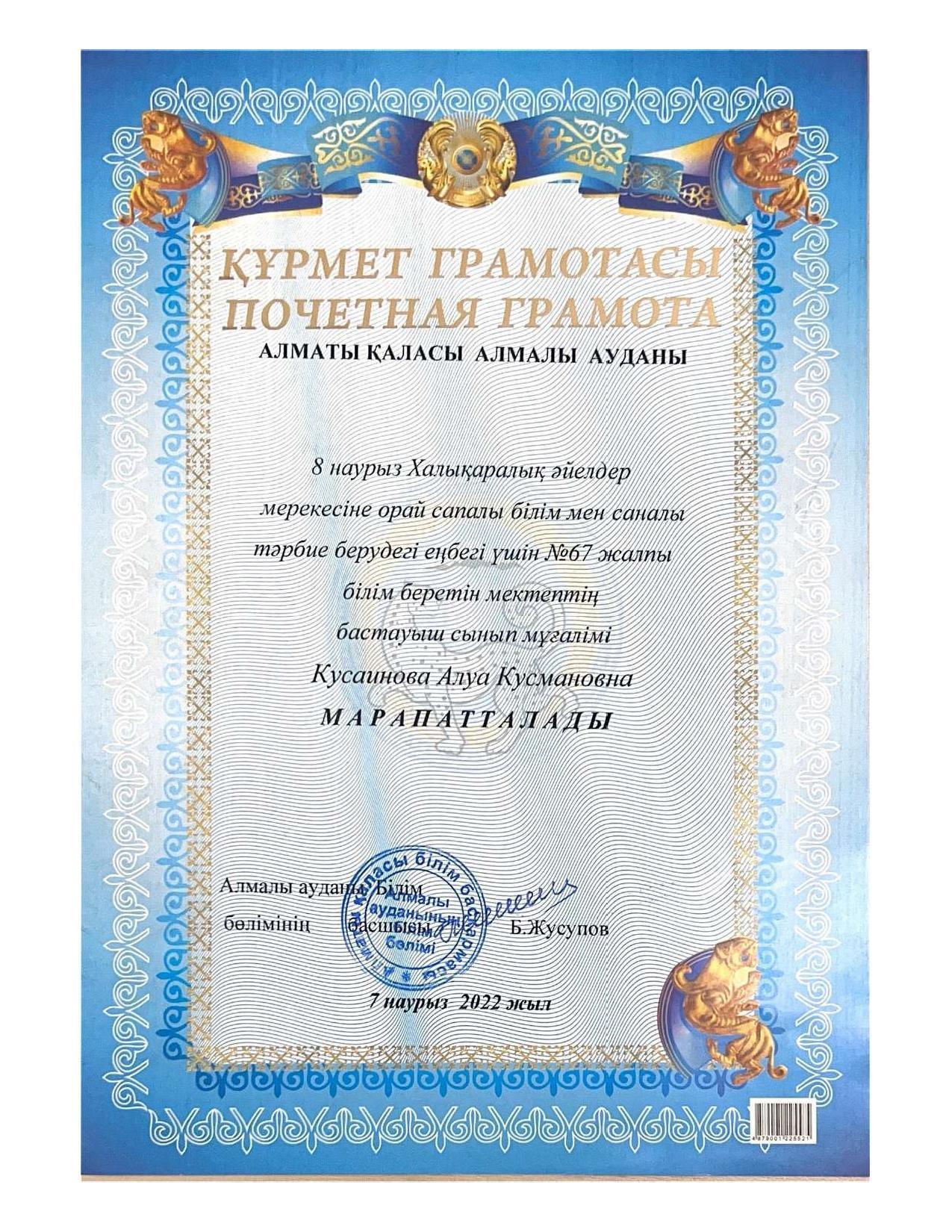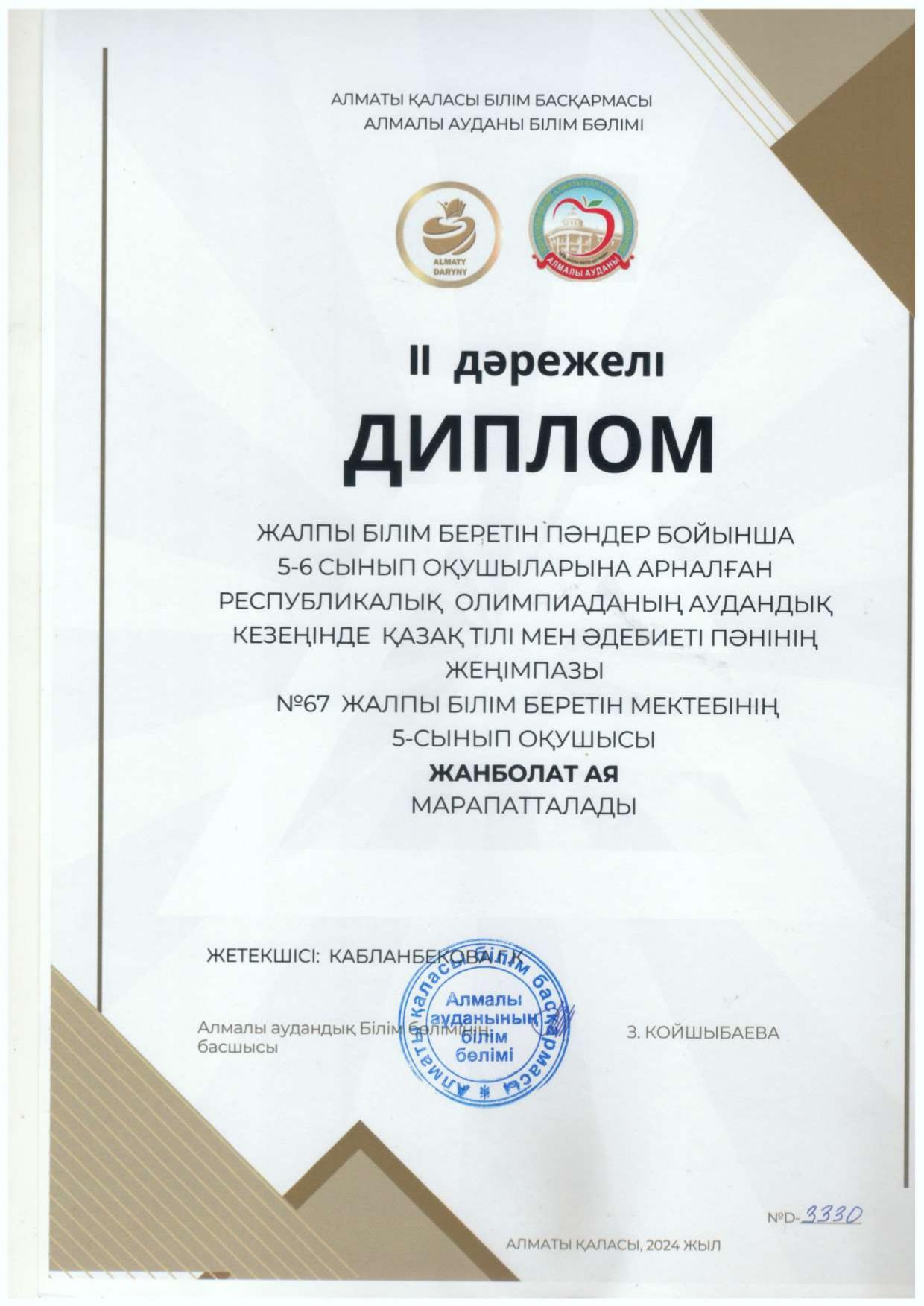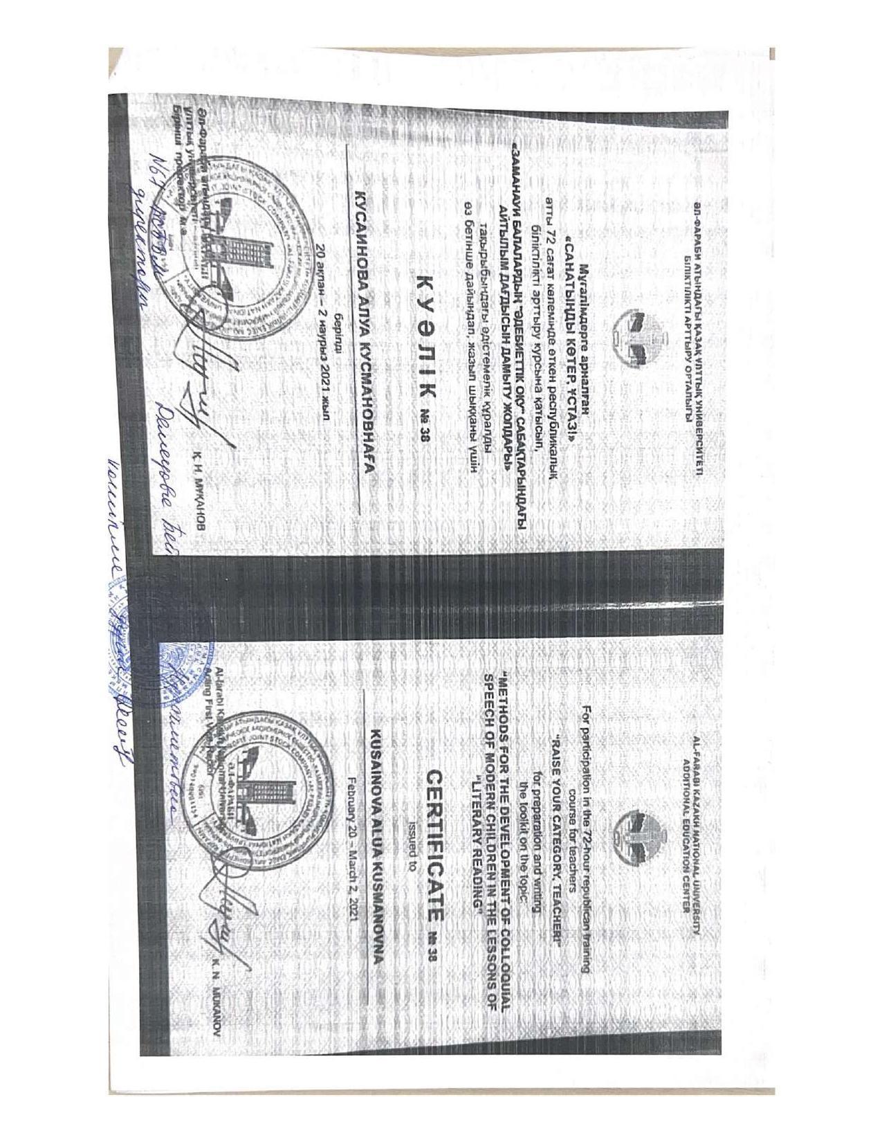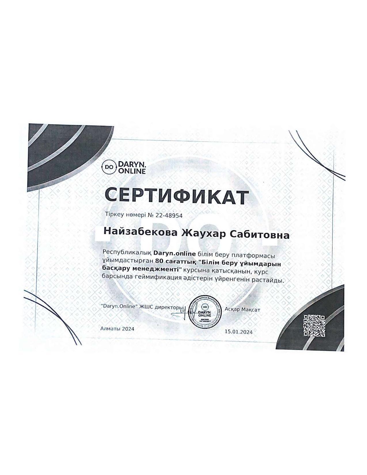 18 қыркүйек 2023 0 1 2 3 4 5 Әкімшілік Жунисбекова Айнура Амантаевна Кабланбекова Гульмира Касымхановна Кусаинова Алуа Кусмановна Найзабекова Жаухар Сабитовна Осы беттің QR-коды:QR-код этой страницы: