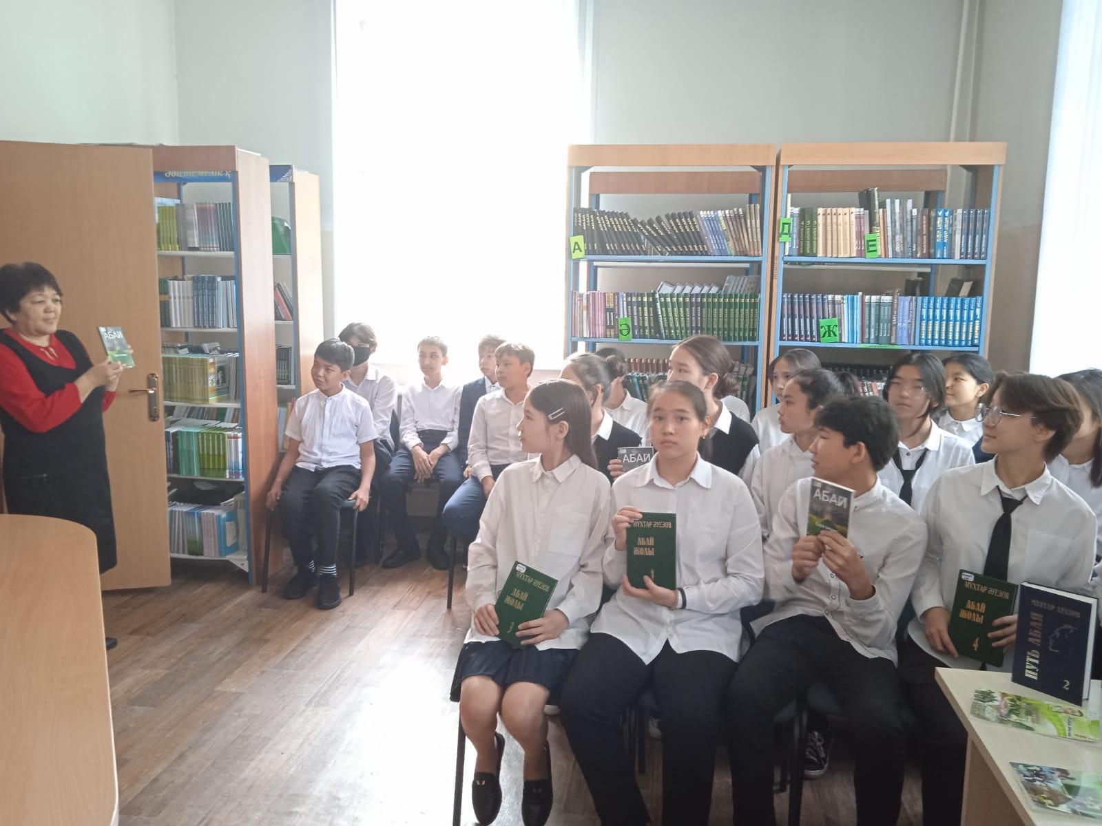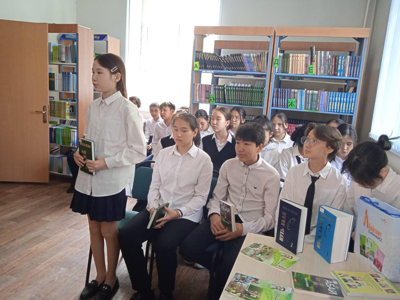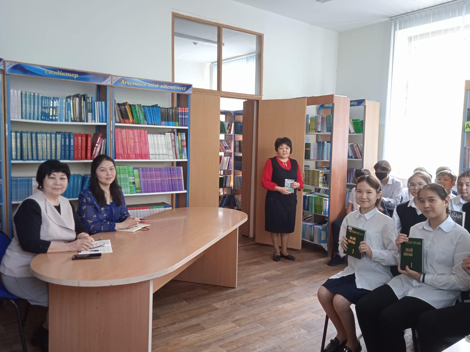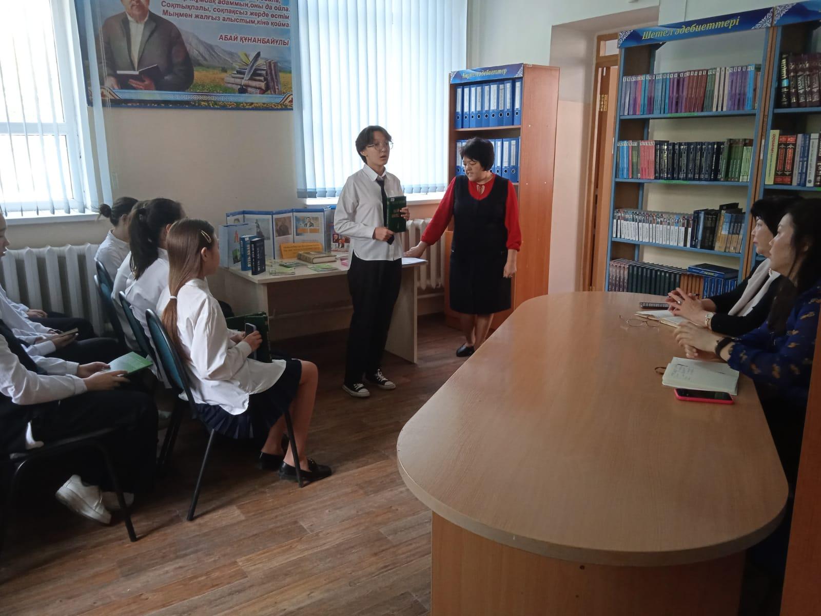 22.04.2022 күні №67 Жалпы білім беретін мектеп кітапханасында Библиофреш көркем әдебиетке шолу 8 сыныптар арасында өткізілді Мақсаты: Өскелең ұрпақты ұлы данышпан Абайдың шығармашылығымен сусындата отырып, сөз қадірін танитын,талантты ұл-қыздарды тәрбиелеу.