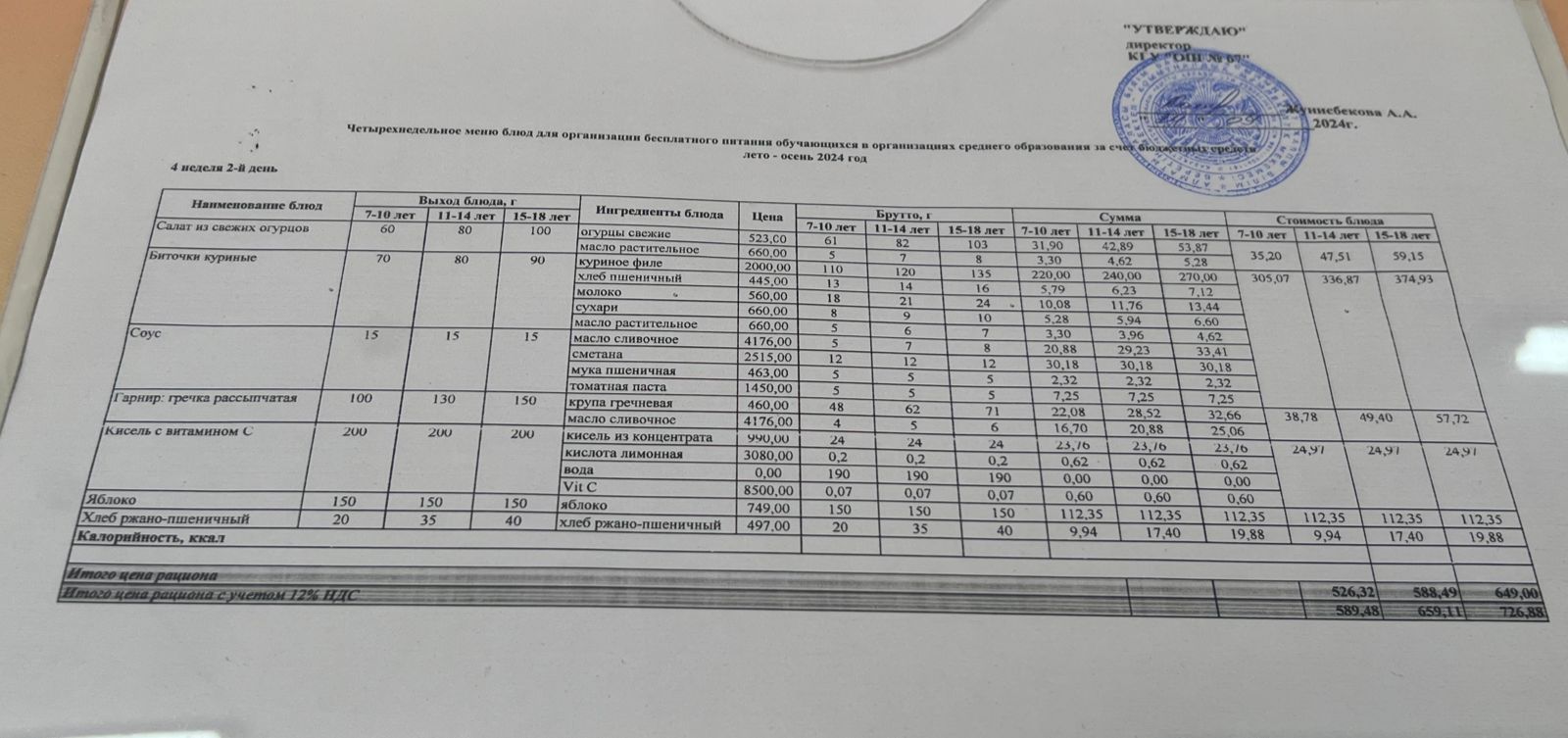 Ас мәзірі. 16.02.2023ж. 2-апта, 4-күн