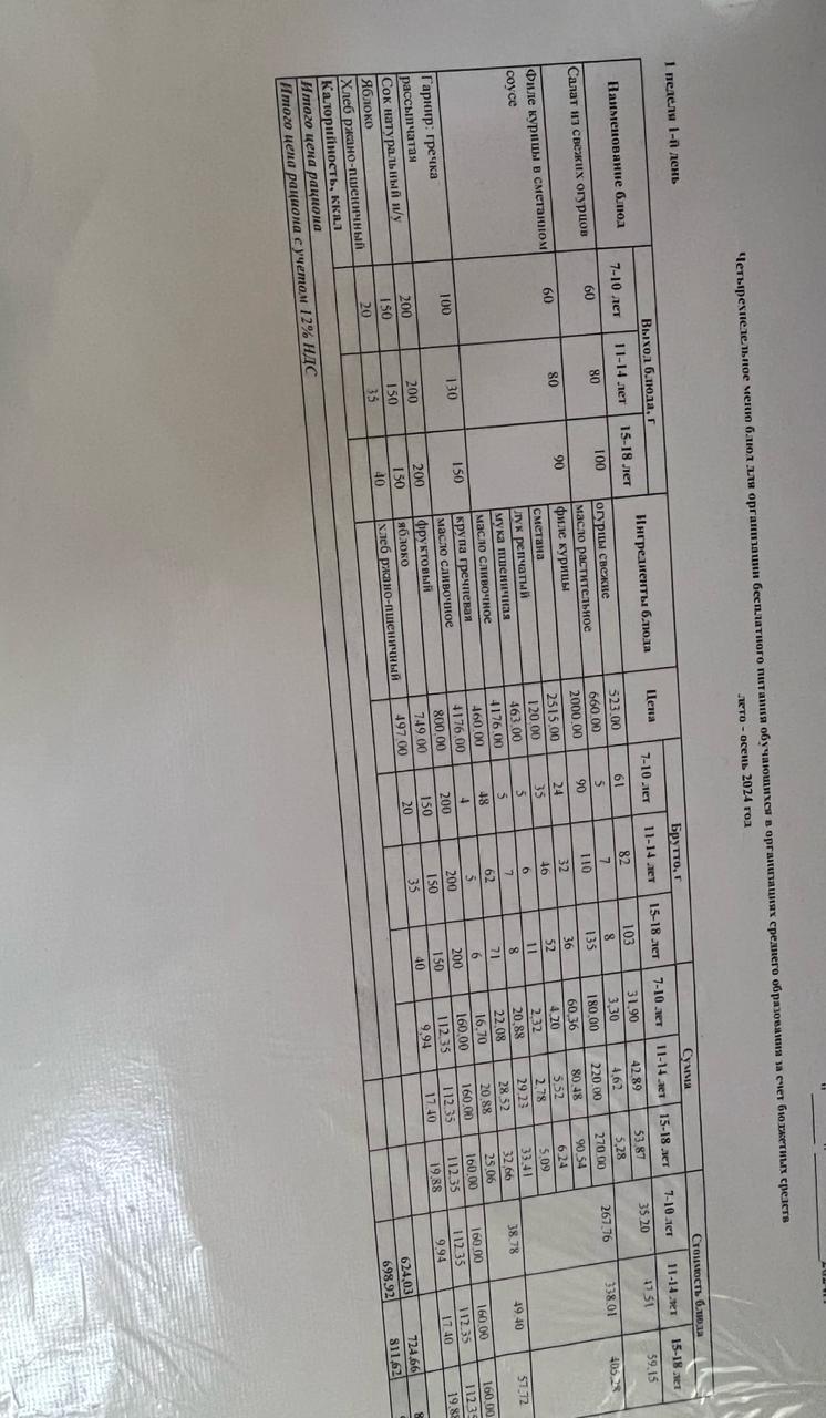 Ас мәзірі. 07.02.2023ж. 1-апта, 2-күн