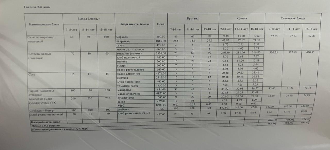 » Ас мәзірі 1 апта 2 күн