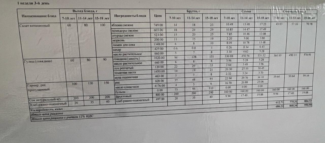 Ас мәзірі 1 апта 3 күн