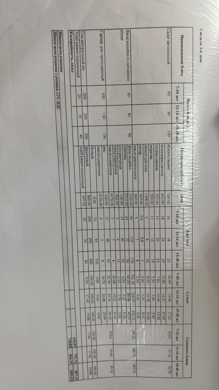 Ас мәзірі 2 апта 3-күн