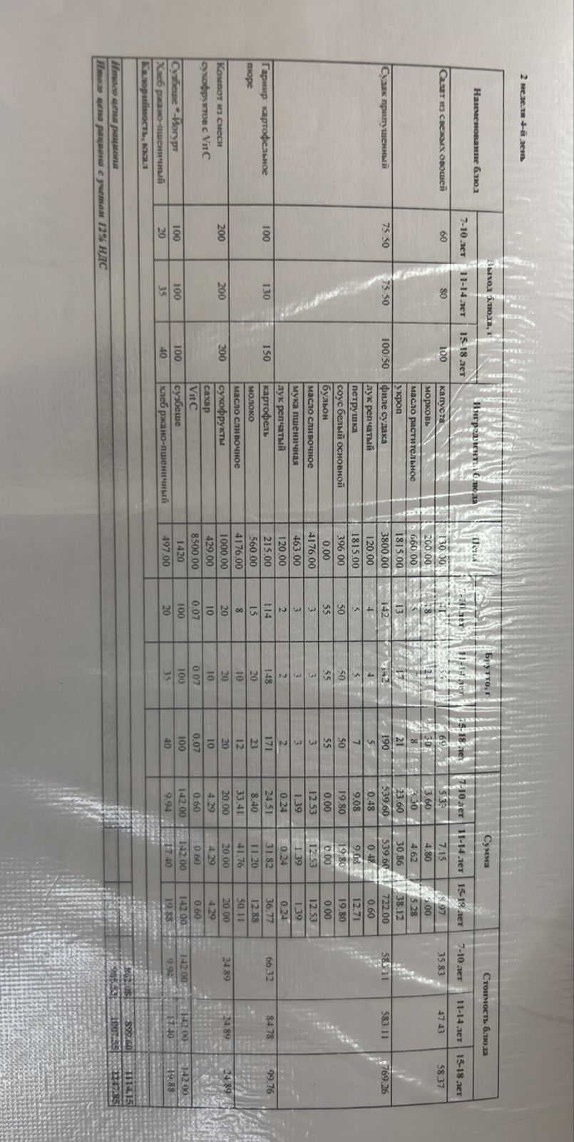Ас мәзірі 2 апта 4-күн