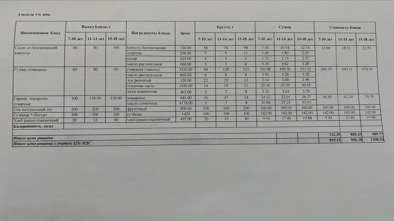 Ас мәзірі. 02.02.2023ж. 4-апта, 4-күн