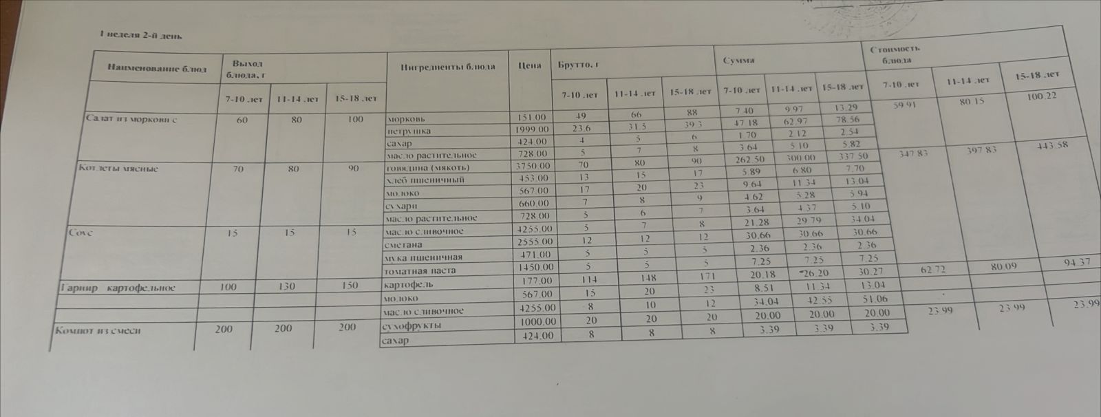 Ас мәзірі 1 апта 2-күн