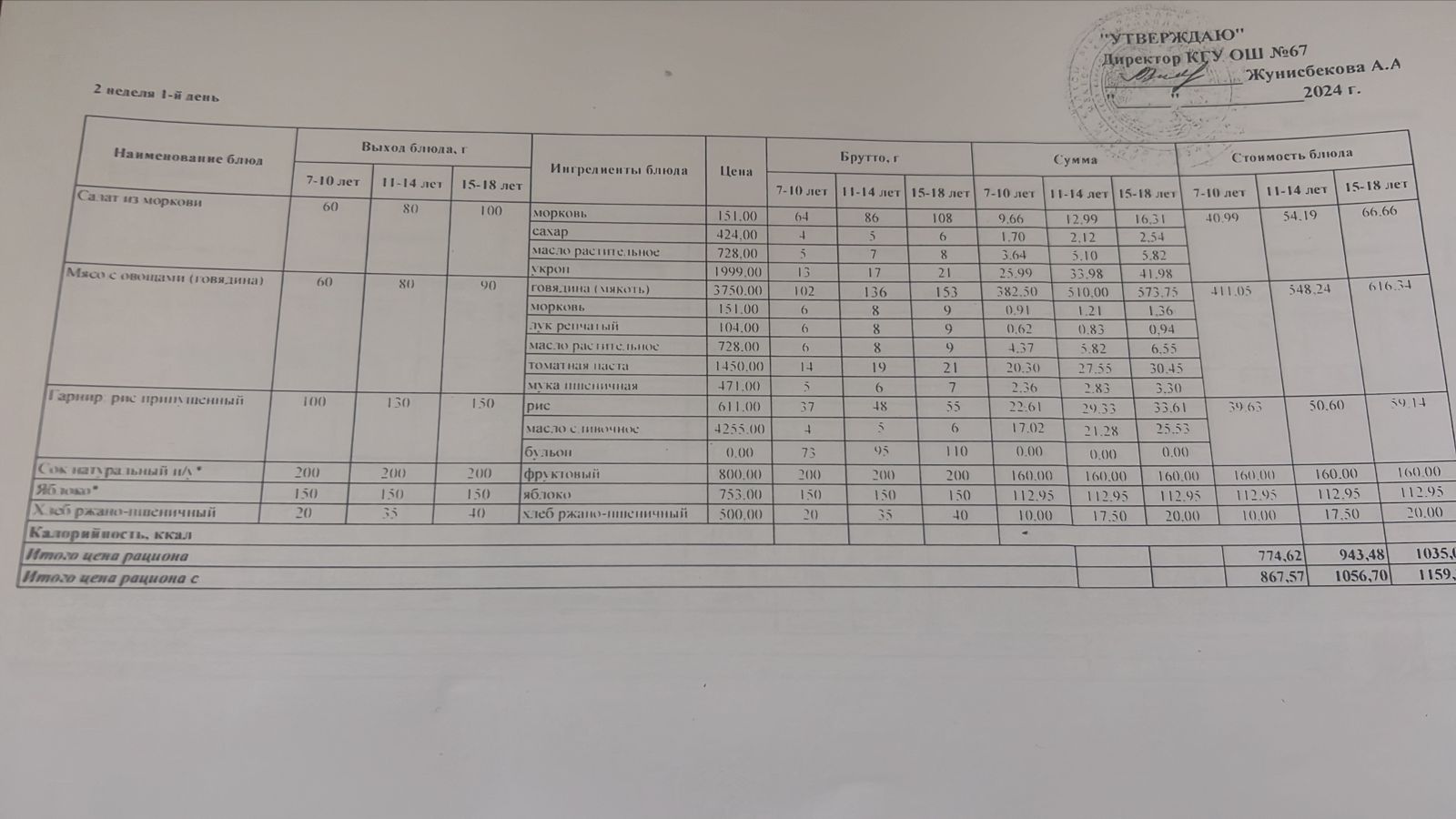 Ас мәзірі. 07.02.2023ж. 1-апта, 2-күн