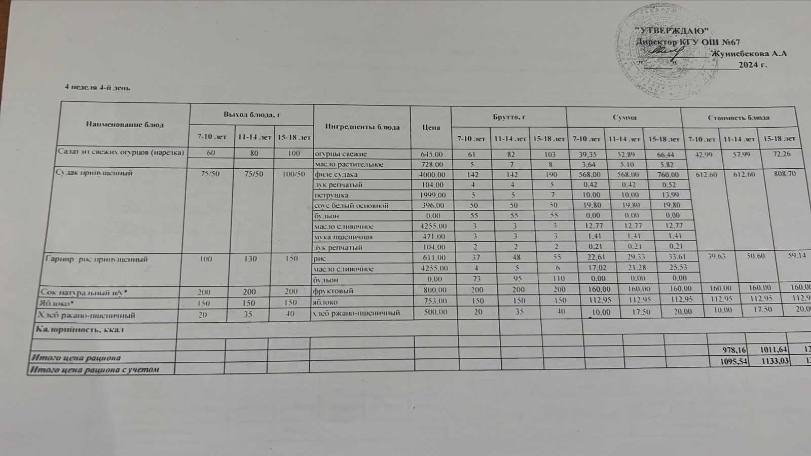 Ас мәзірі 4 апта 4 күн