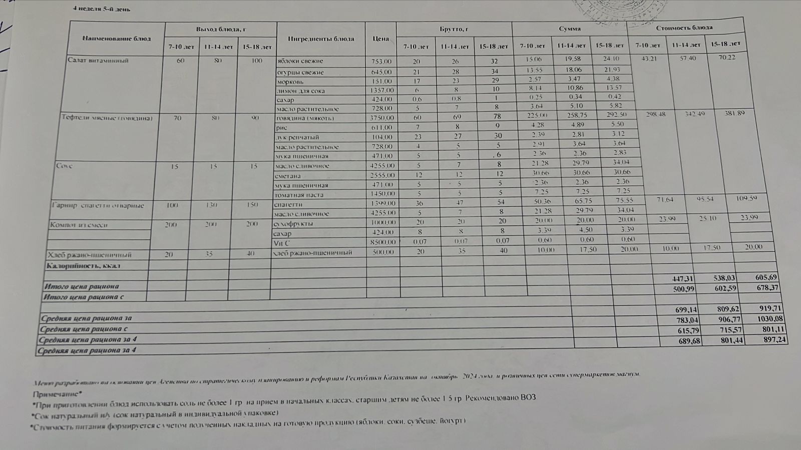 Ас мәзірі. 17.02.2023ж. 2-апта, 5-күн