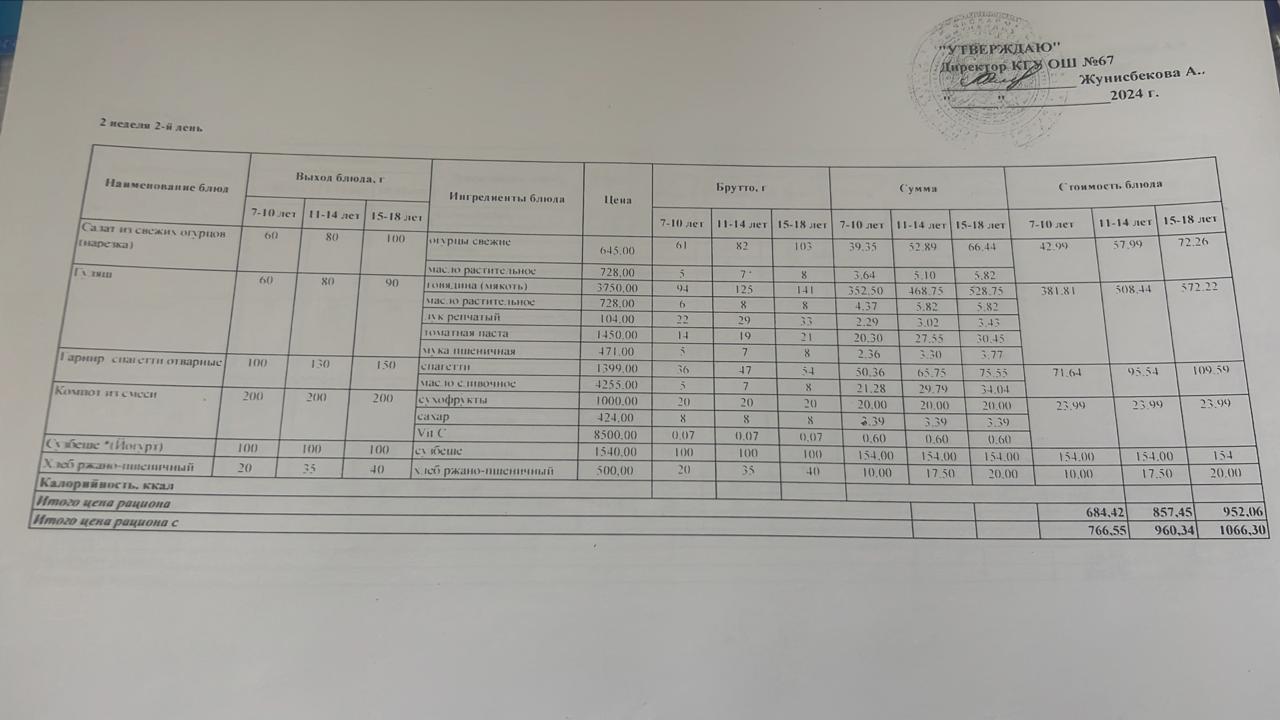 Ас мәзірі. 16.02.2023ж. 2-апта, 4-күн