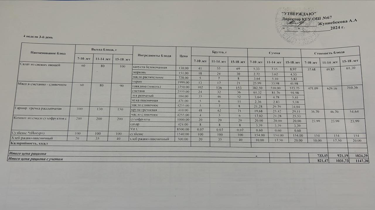 » Ас мәзірі 4 апта 3 күн