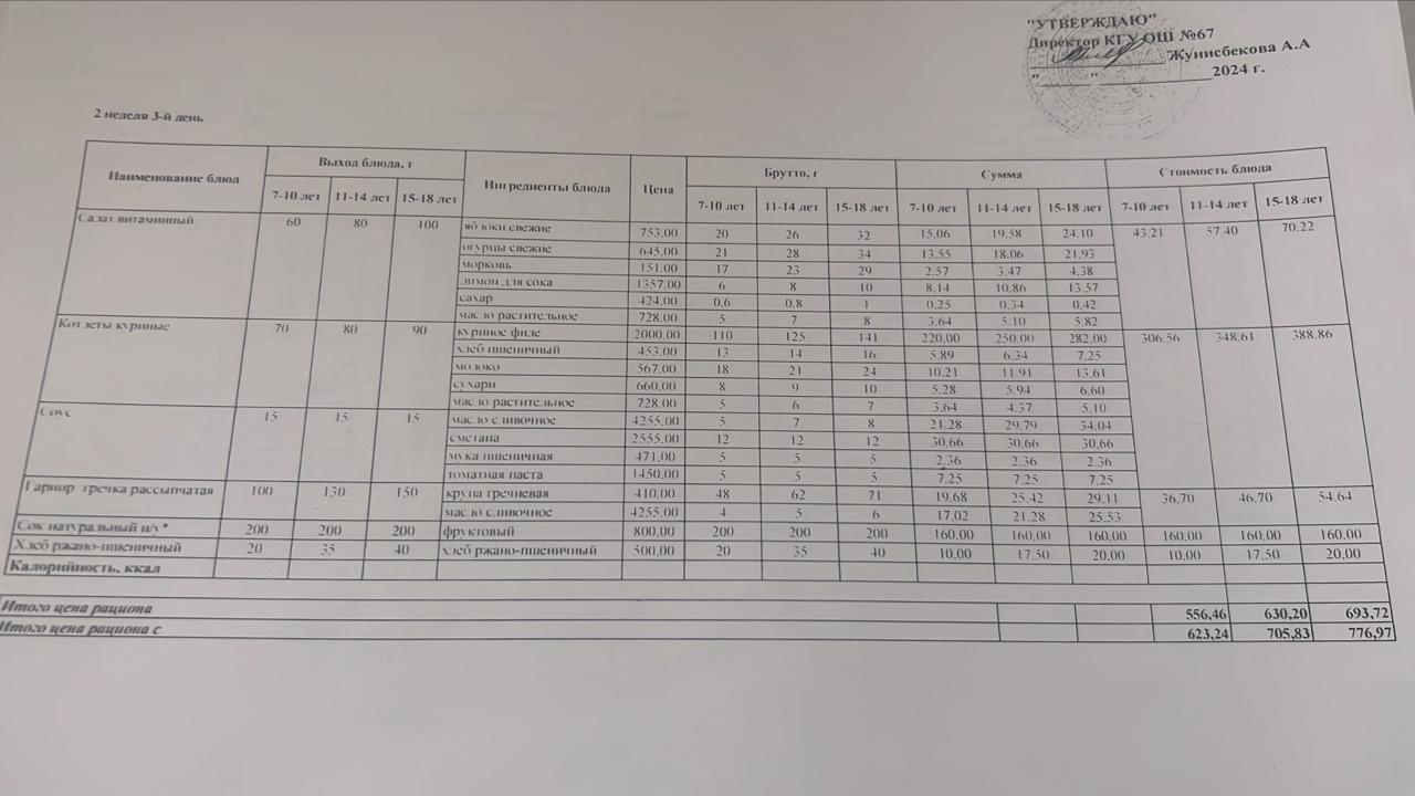 Ас мәзірі 2 апта 3 күн